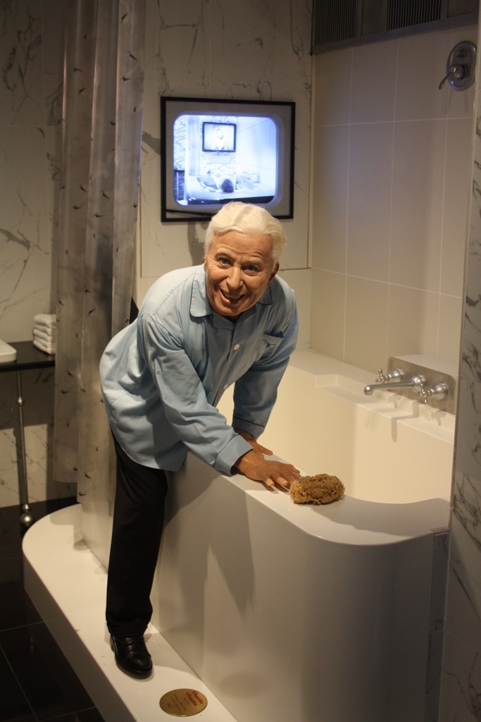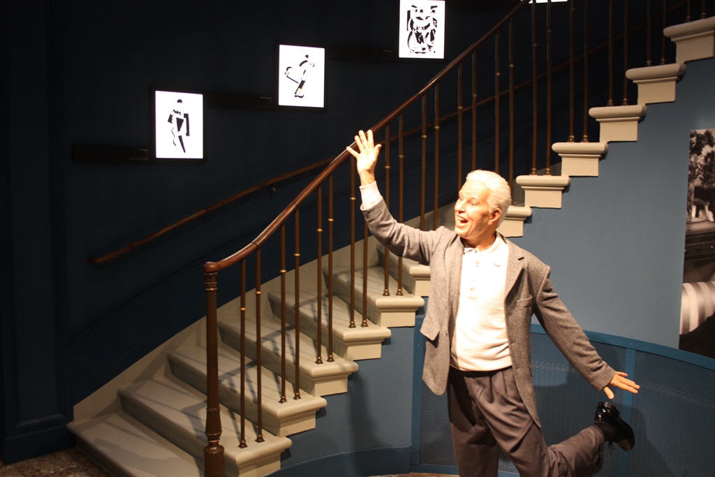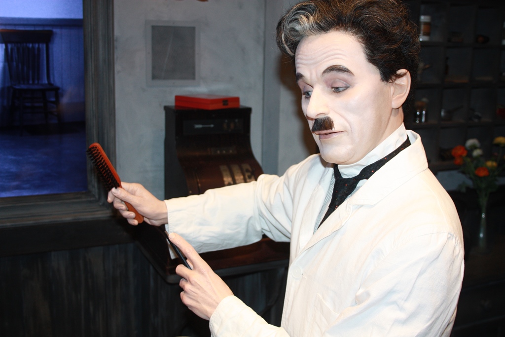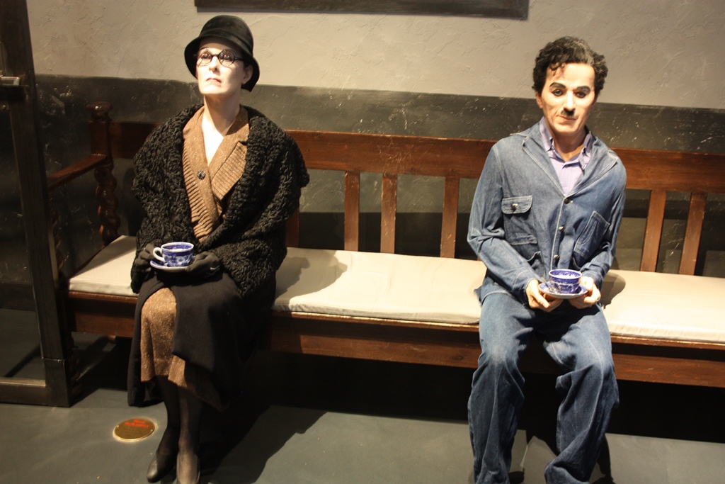Danach hebt sich die Leinwand und wir befinden uns direkt im Museum, das vielen bekannten und weniger bekannten Filmkulissen nachempfunden ist. Nicht nur Charlie Chaplin, auch viele seiner Kolleginnen und Kollegen begegnen uns wie mitten in den Dreharbeiten als lebensgrosse Figuren.
