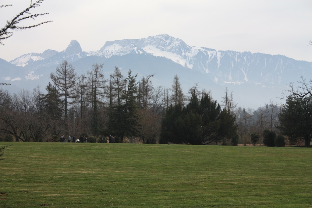 Wir werden aber dadurch entschädigt, daß wir fast ohne Wartezeit mit der Standseilbahn duch die Weinberge an Chardonne vorbei hinauf auf den Mont-Pèlerin fahren können. Dort gönnen wir uns ein auch für Schweizer Verhältnisse überteuertes Mittagessen, aber der Ausblick entschädigt dafür. Da in der Zwischenzeit der Nebel teilweise aufgerissen hat, ist der Genfersee mit Vevey, Montreux und den umliegenden Bergen ein Genuß für unsere Augen.