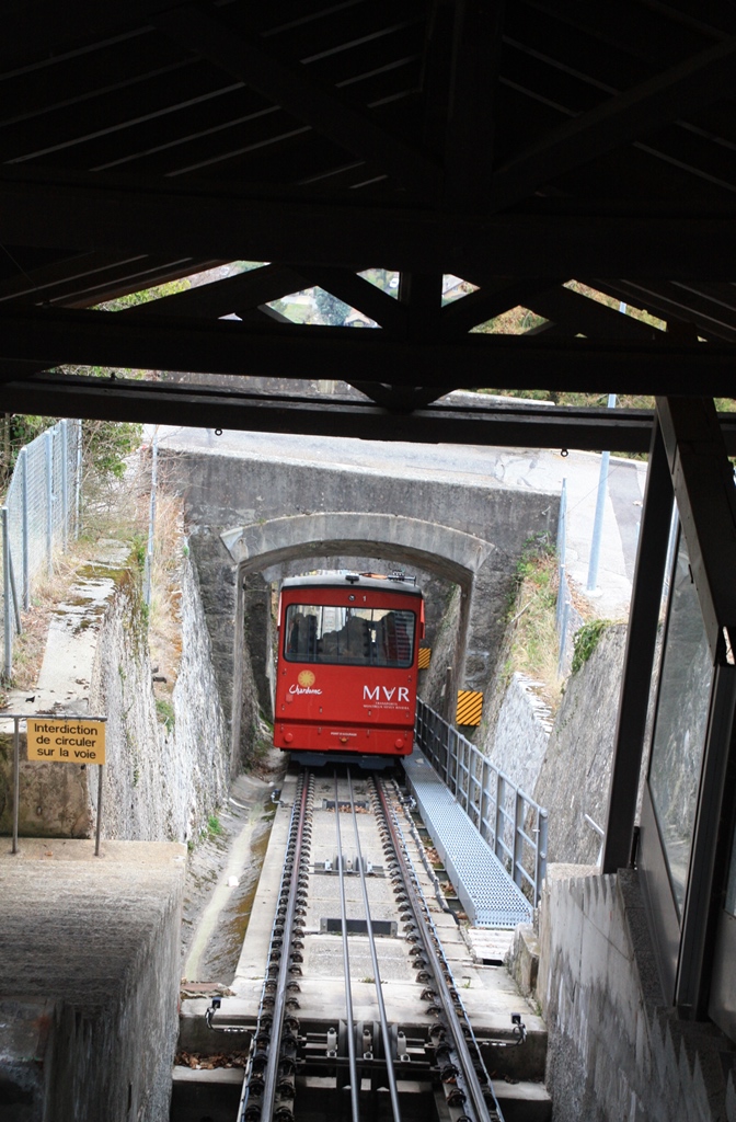 Nach einem Kaffee im Café „The Tramp“ wollen wir wieder mit dem Shuttle zurück zum Ausgangspunkt bei der Talstation „Vevey Funiculaire“ der Standseilbahn. Leider macht der aber Mittagspause und so marschieren wir eben eine gute Viertelstunde zu Fuß hinunter.