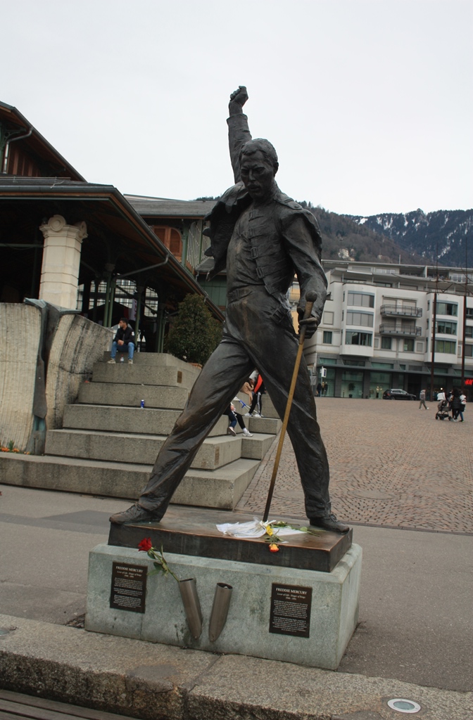 Nach der Talfahrt geht es mit dem Bus zurück bis zur Station Montreux Marche, wo wir noch einen weiteren berühmten Gast besuchen. Freddie Mercury, der Sänger der Rockgruppe Queen, liess sich in Montreux nieder, weil er die Beschaulichkeit des Ortes liebte und erwarb hier ein Aufnahmestudio, wo er sein letztes Album mit der Gruppe Queen produzierte: „Made in Heaven“. Die Statue direkt an der Seepromenade haben wir natürlich besucht, für das Museum in den ehemaligen Queen-Studios war es uns aber zu spät.
