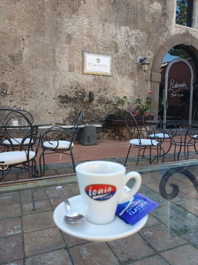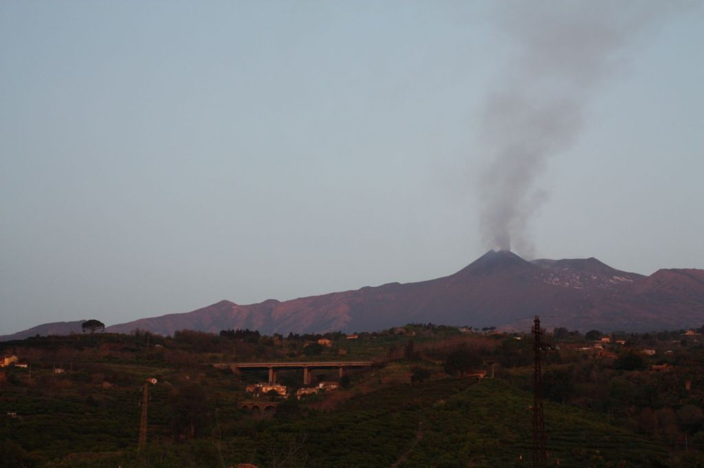 Natürlich haben wir beim Anflug auf Catania schon geschaut, ob der Ätna eh noch Ringerl raucht. Aber leider, nichts cooles, sondern „nur“ eine weissgraue und eine braune Rauchschwade stiegen auf. Auch auf unserer Fahrt an der Küstenstrasse SS114 vom Flughafen zum „Etnahotel“ in Giarre gab es nicht mehr zu sehen. Aber auch das reicht und beeindruckt, wenn man bisher noch keinen aktiven Vulkan in Natura gesehen hat.