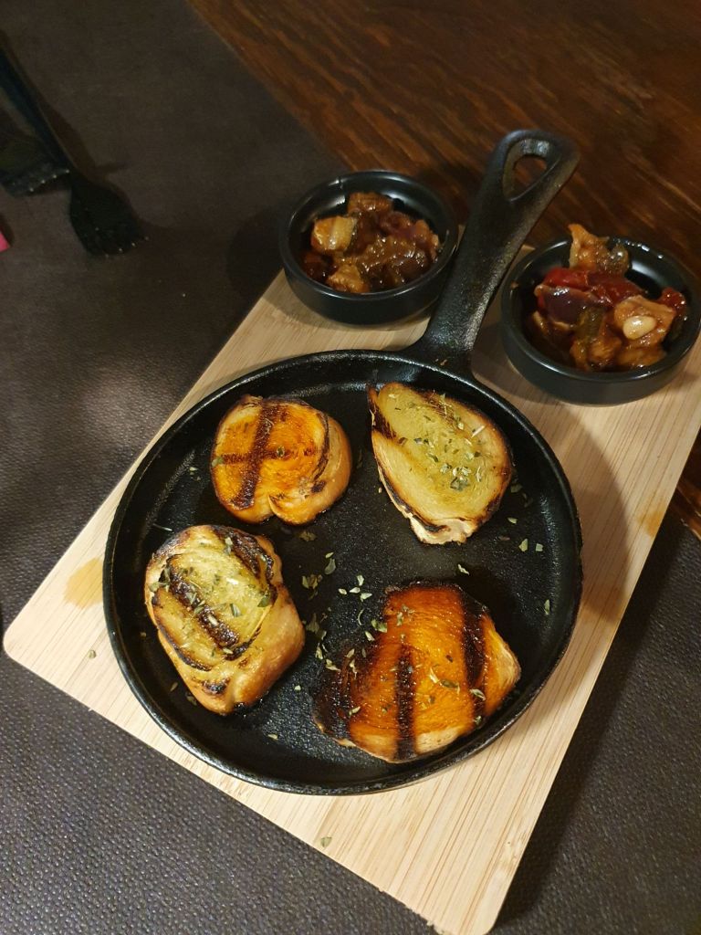 Wir wollten zum Abendessen auch nicht mehr ins Auto steigen, so haben wir das hoteleigene Restaurant besucht. Eigentlich will ich ja keinen Foodblog machen, aber schon der Gruß der Küche hat uns so begeistert, dass ein erster kleiner Abstecher dazu unvermeidlich ist.
