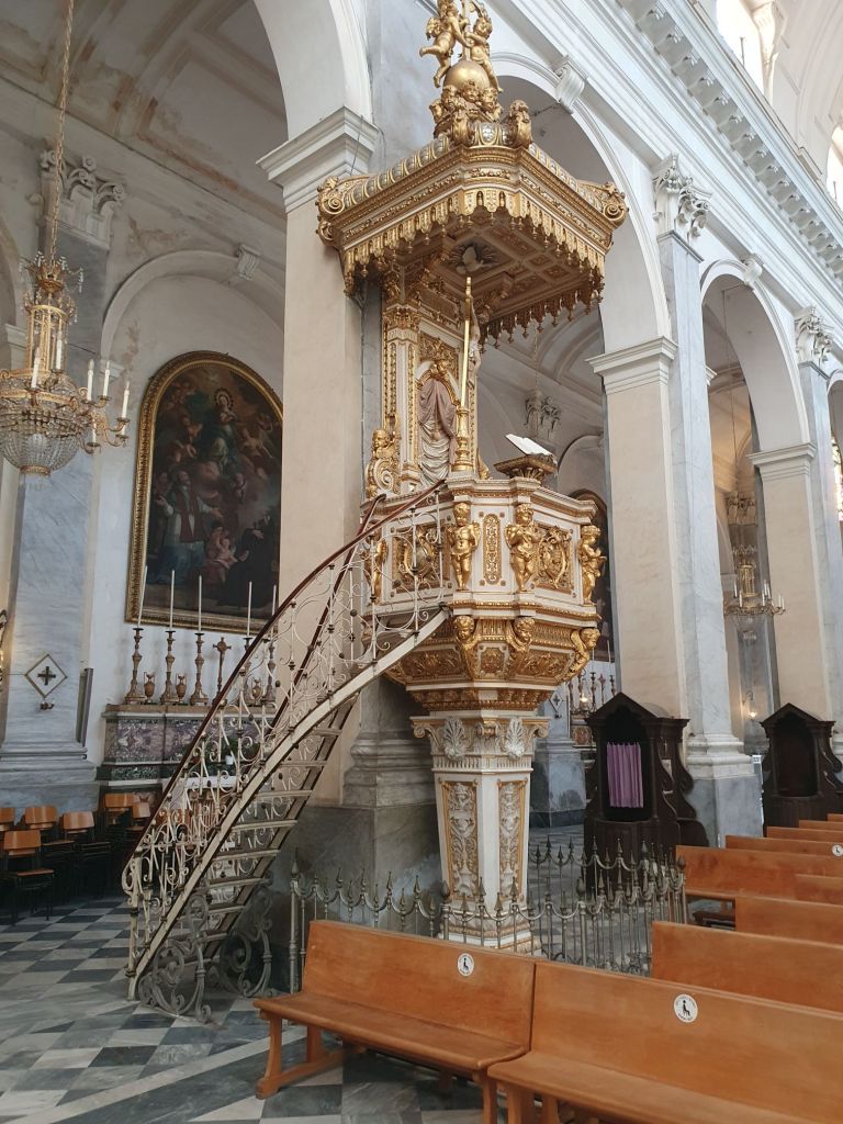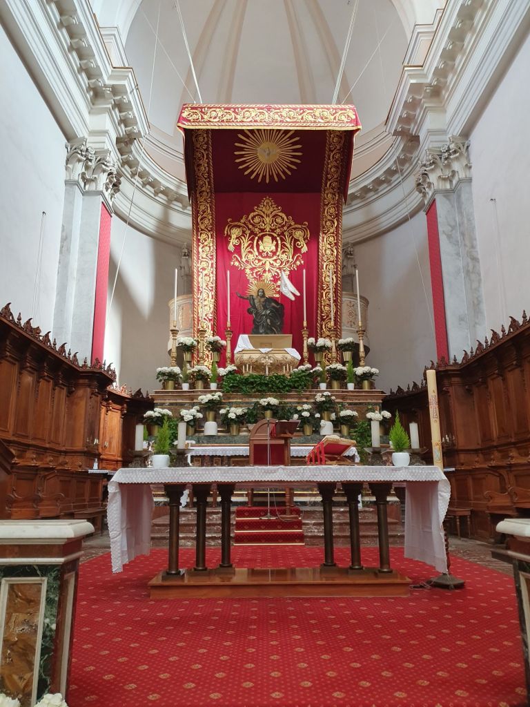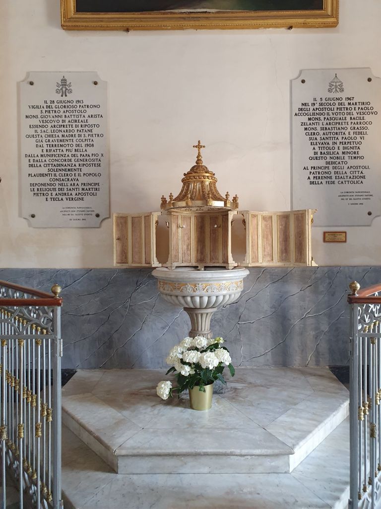 Die Basilica Matrice „San Pietro“, ein neoklassizistischer Bau aus 1808, beeindruckte uns mit einer interessanten Kanzel, einem Hochzeitsaltar und dem Taufbecken. Wie wir auf ausgestellten Bildern sahen, fand zu Ostern auch ein beeindruckendes Passionsspiel „Le ultime ore del Christo“ am Platz vor der Kirche statt