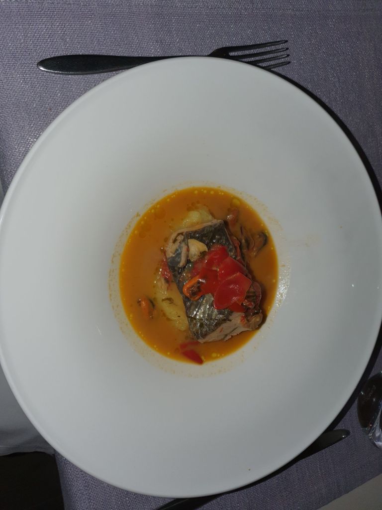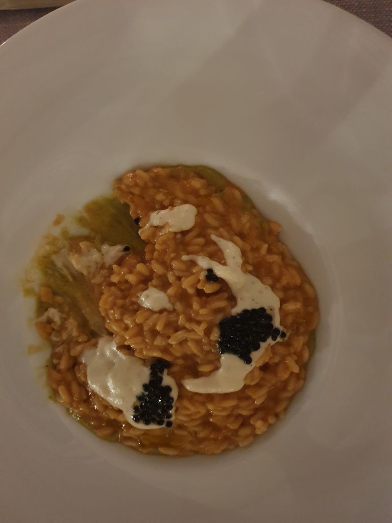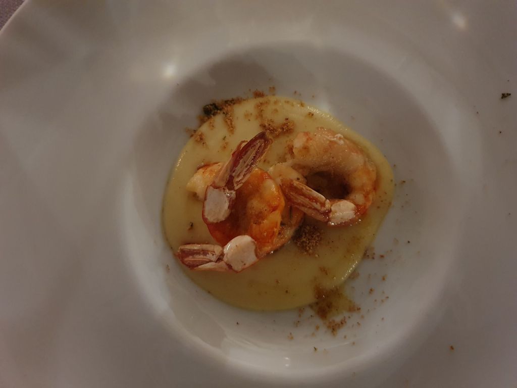 Nach einer kleinen Ruhepause war der Hunger groß genug um das hoteleigene Restaurant zu besuchen. Der Chef des Hauses versuchte uns wortreich sein Menü zu erklären, was wir wieder nicht wirklich verstanden. Wir einigten uns daher, dass es ein Überraschungsmenü mit Fisch und Mehresfrüchten werden sollte. Wir waren von allen 4 Gängen von Garnelen auf Kartoffelbrei über Risotto mit Käse und Kaviar, gedünstetem Fisch auf Kartoffeln und einer Sauce von Meeresfrüchten bis zu Mandelpudding sehr angetan, die Bilder davon sollen selbst sprechen.