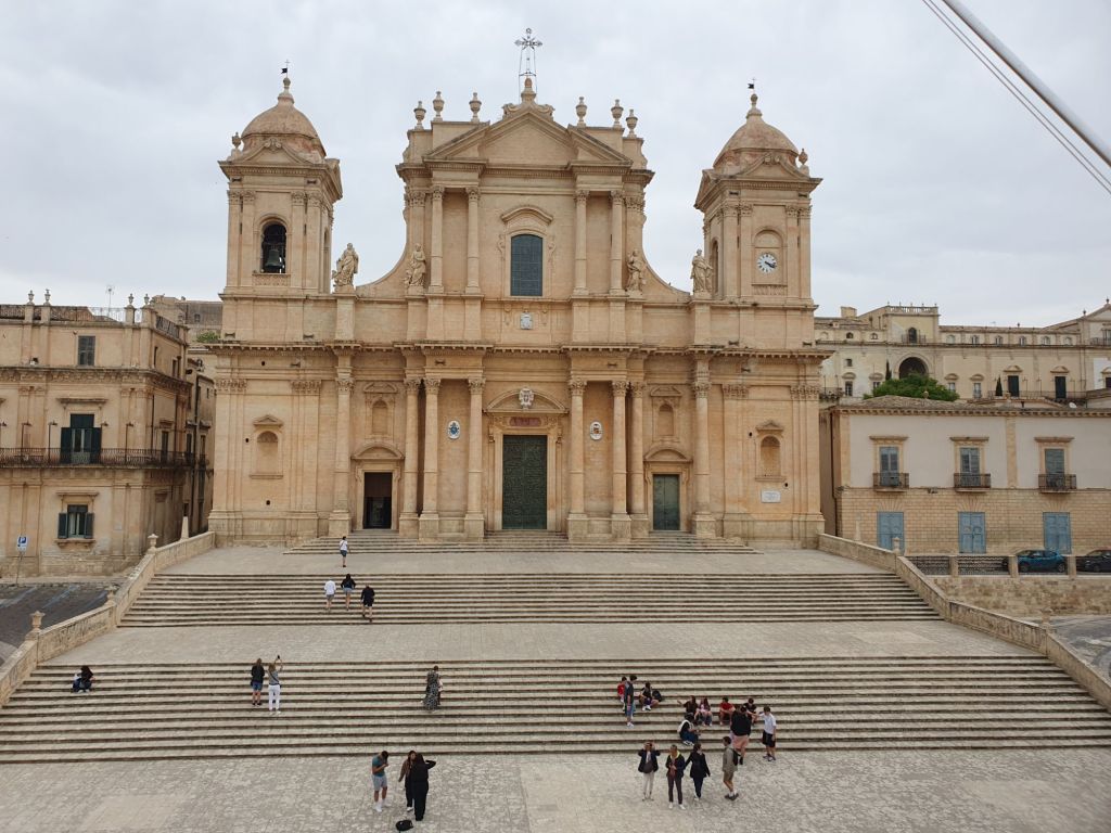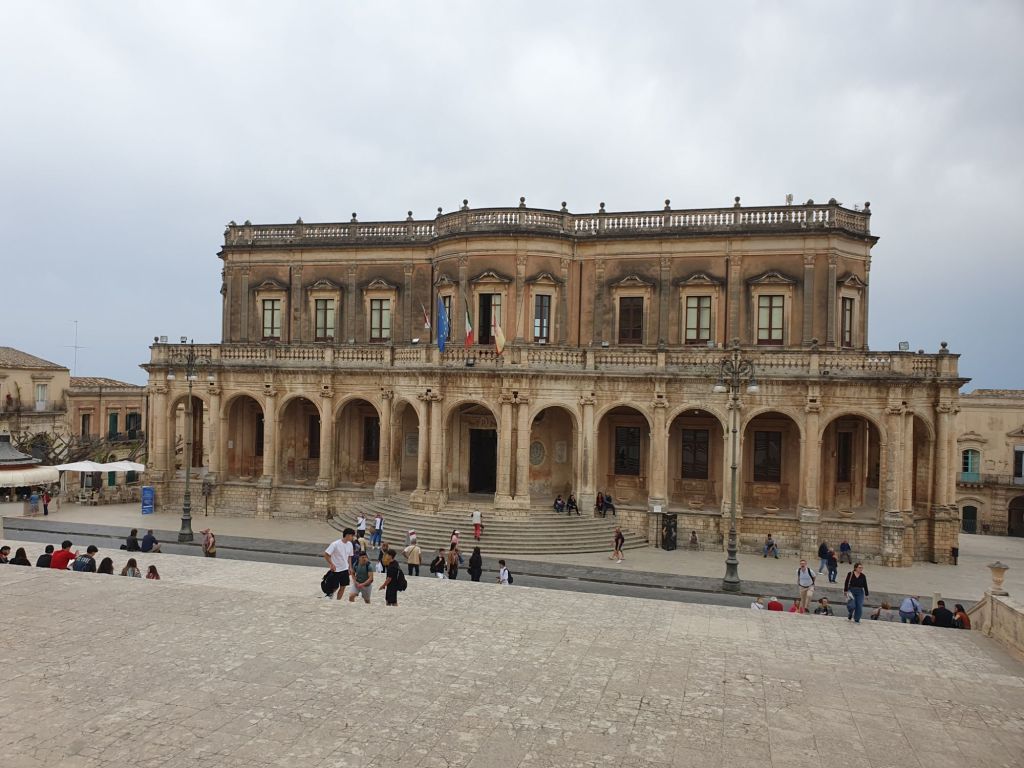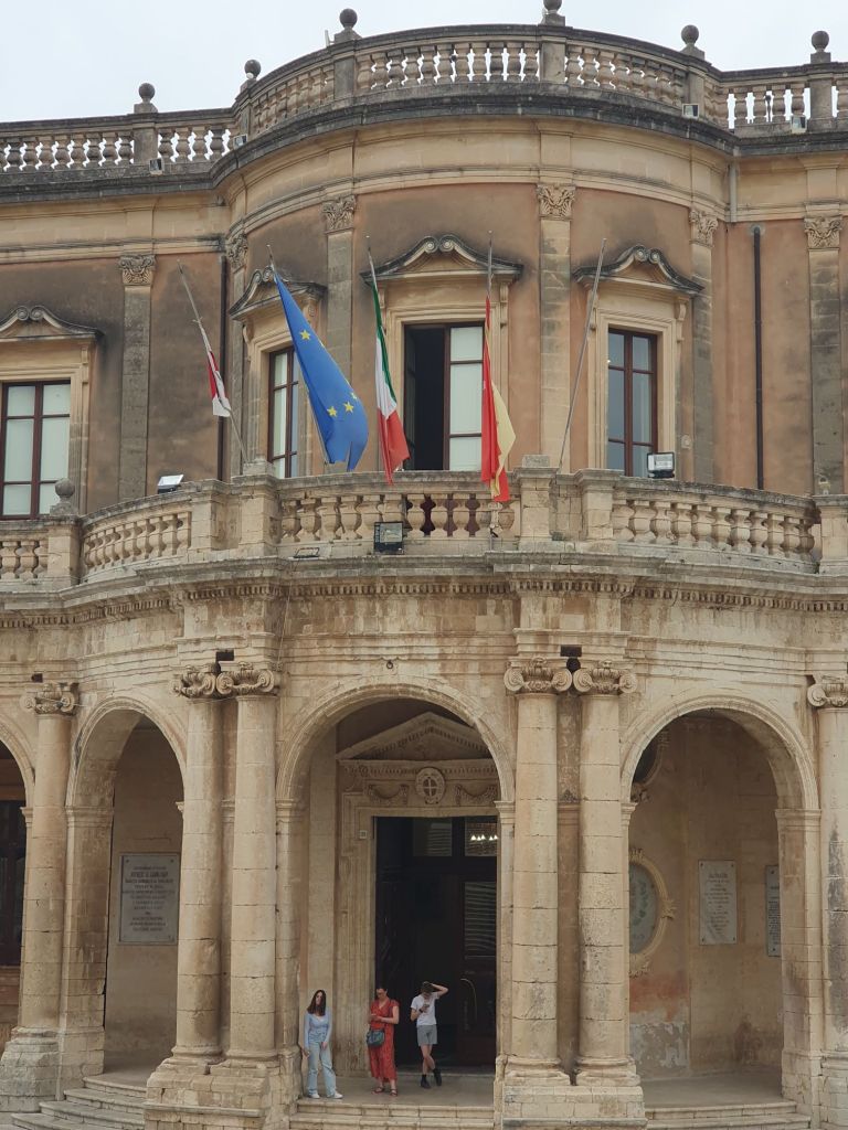Wir wollten noch eine weitere Stadt des Val di Noto kennen lernen und fuhren deshalb in das namesgebende Noto. Die Altstadt ist durch ihre Hanglage wesentlich weitläufiger, aber um nichts weniger beeindruckend. Am Platz stehen sich die Cattedrale di San Nicolò, eine rekonstruierte sizilianische Barockkathedrale aus dem 18. Jahrhundert mit klassizistischer Kuppel, und der Palazzo Ducezio, heute das Rathaus, gegenüber. Dieses hat eine fast umlaufende Panoramaterrasse, die um ein paar Euro zugänglich ist und einen wunderschönen Blick über die Stadt bietet.