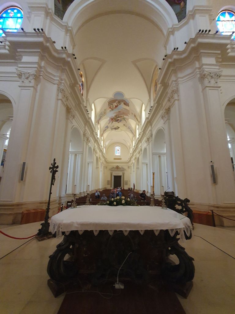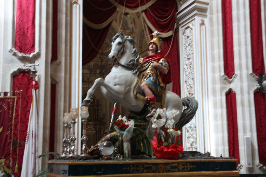 Wir parkten unser Auto am Parkplatz nahe des oberen Endes der Ragusa Ibla und marschierten dann durch die engen Gassen der beeindruckenden Altstadt. Am Piazza Duomo besuchten wir gleich den Duomo di San Giorgio, der als Schutzpatron am 23.April gefeiert und dessen Statue und Schrein mehrmals von starken Männern über den Platz getragen werden. Da wir das nur um wenige Tage verpasst haben, hier ein Video davon: