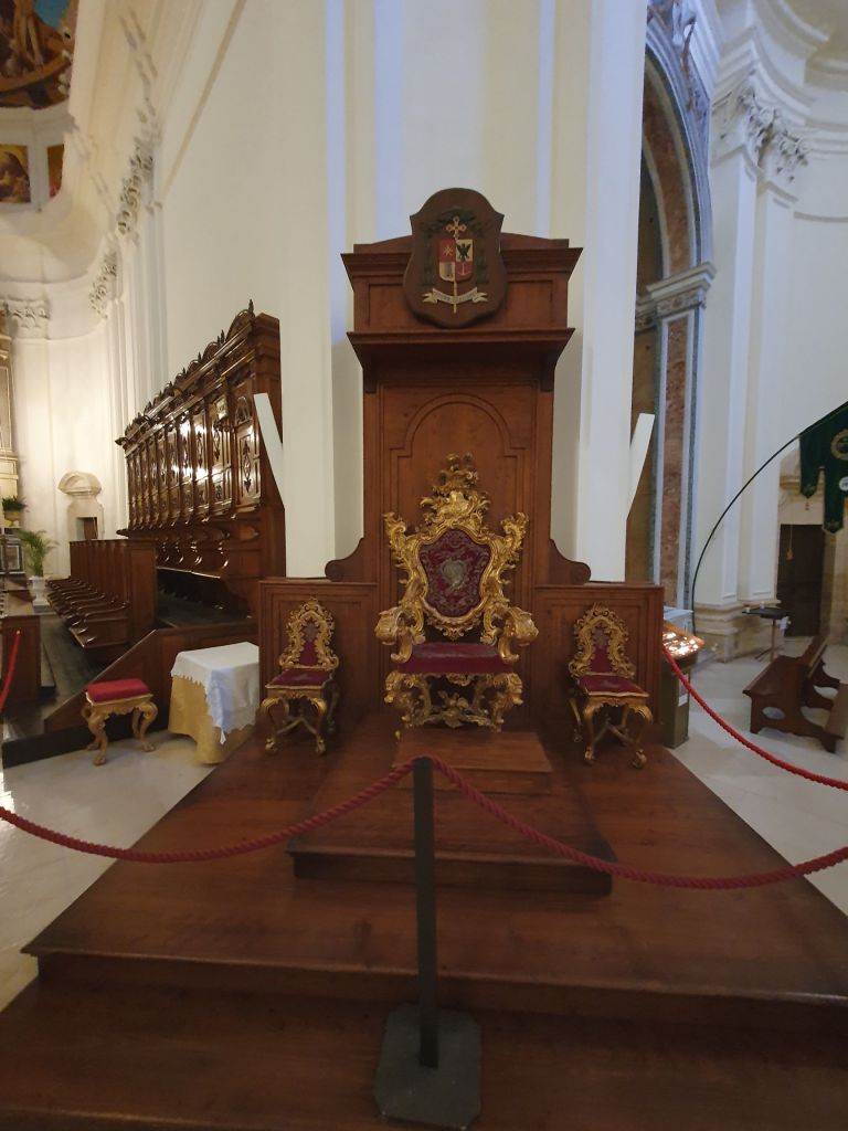 Im Dom mit Blick über den Volksaltar und auf den Bischofsstuhl wurde ich an den Wunsch meines Religionslehrers in der Volksschule erinnert, dass ich Priester werden solle. Das habe ich aber bereits mit 10 Jahren verworfen, da mich schon damals störte, dass ich nicht heiraten könnte. Da genieße ich mein derzeitiges Pensionistenleben lieber ohne zusätzliche Aufgaben.