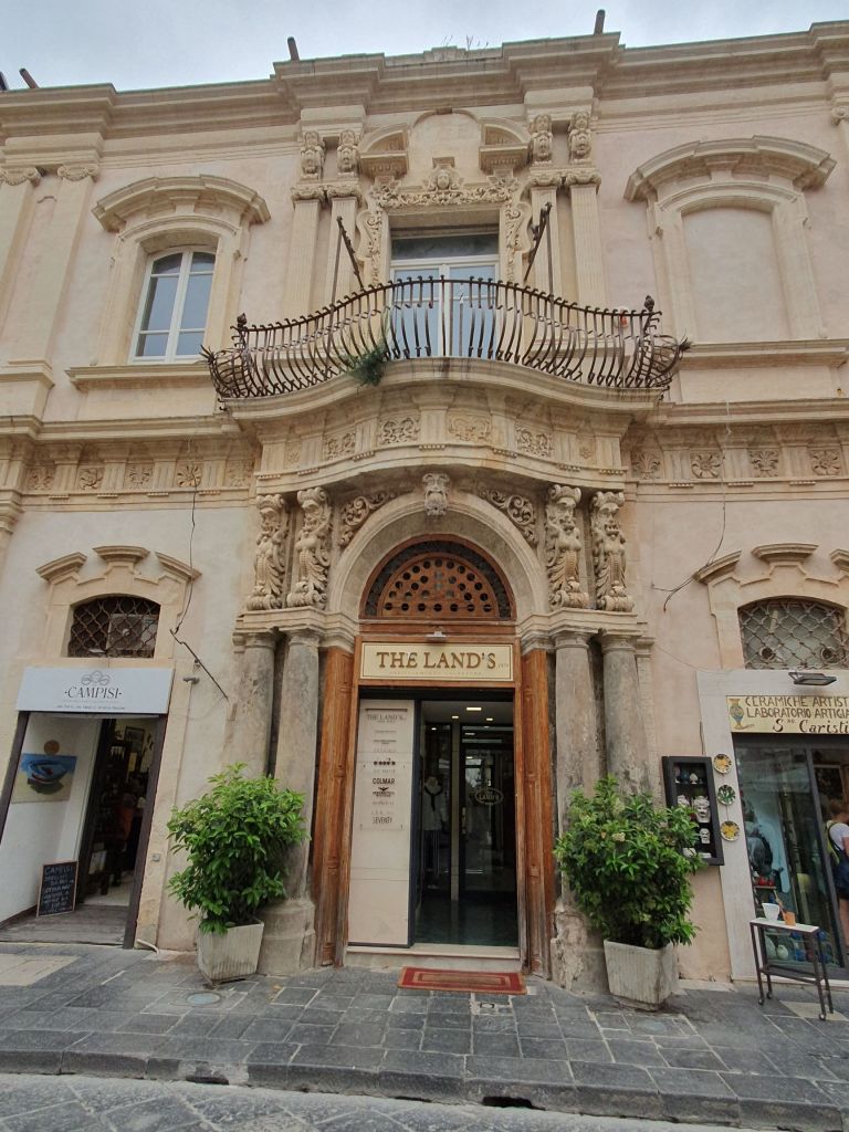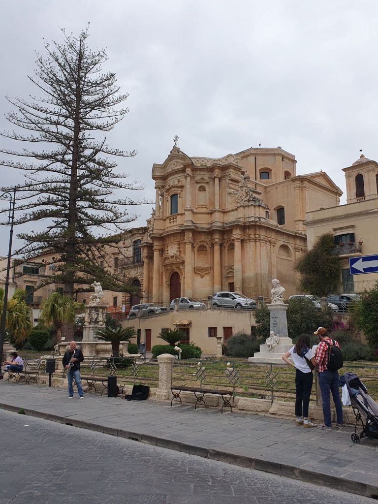 Viele teilweise noch unrenovierte spätbarocke Paläste, wie der Palazzo Rocco, der schon fast wieder fertig, aber geschlossen ist, und Kirchen beeindrucken uns Besucher. Das Portal San Giorgio nahe des wunderschönen Park Ibleo mit vielen Pflanzen und einer grandiosen Aussicht über die umliegenden Berge und Schluchten ist der vom Erdbeben verschonte Rest der ehemals gotischen Kirche San Giorgio.