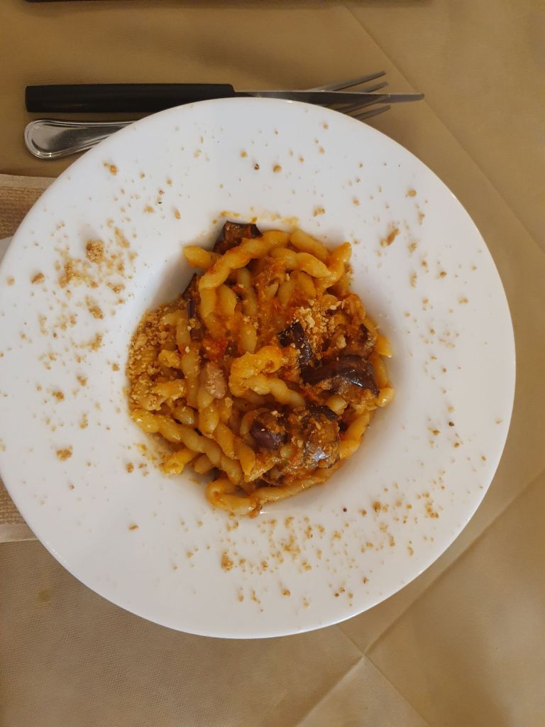 Am Abend genossen wir in einem netten Restaurant, das wir schon am Nachmittag entdeckt hatten, als gemeinsame Vorspeise Fior di Buffala con Rucola e Ciliegino, da möchte man keinen anderen Büffelmozarella mehr und danach Busiate al Pesto Trapanese, längere gedrehte Nudeln mit Pesto aus Mandeln und getrockneten Tomaten, einfach ein Geschmackserlebnis. Meine Frau hat die ersten Frittura di Calamari auf Sizilien gegessen, es gibt einfach zu viel Gerichte, die man ebenfalls probieren möchte.