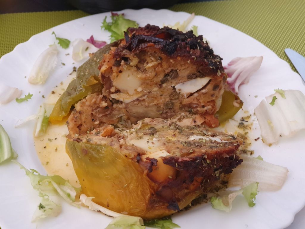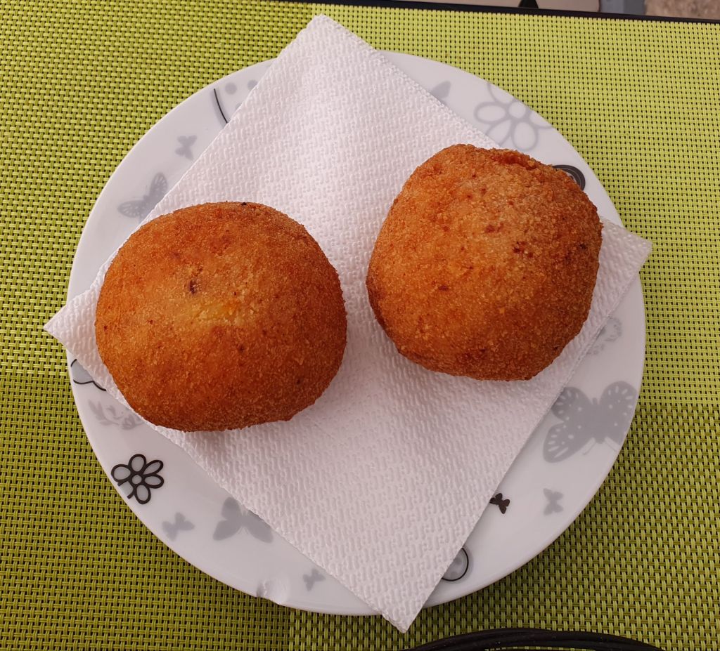 Da das leibliche Wohl auch nicht zu kurz kommen darf, stärkten wir uns beim etwas verspäteten Mittagessen mit Peperoni ripieni alla Siciliana (vegetarische gefüllte Paprika) und Arancini, diesmal in der Kugel- (Palermo) Form.