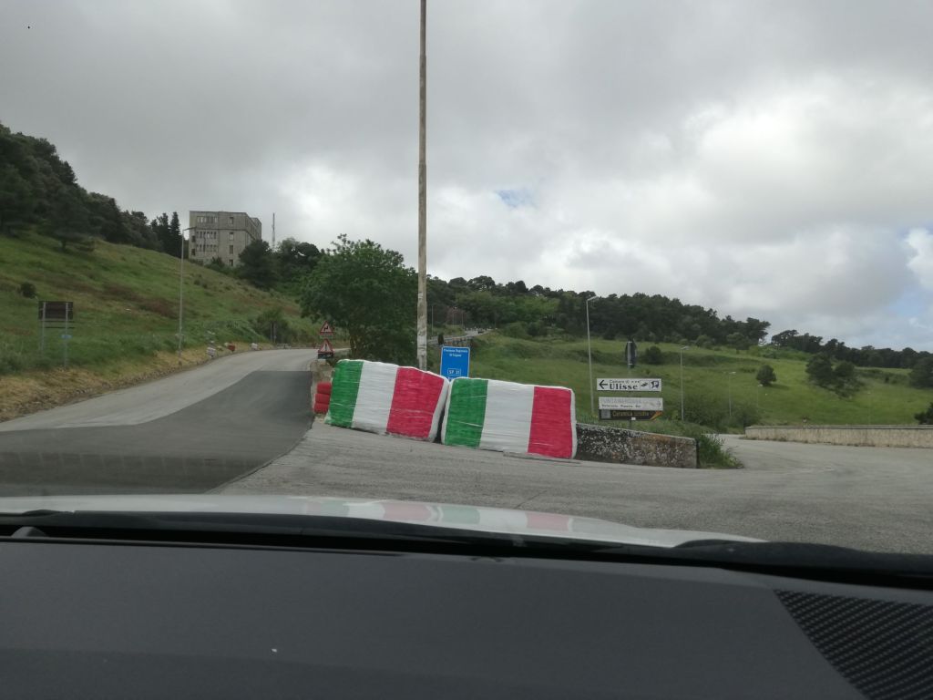 Die Serpentinen hinauf nach Erice stehen vielen Bergstrassen in den Alpen um nichts nach. Bis auf eine Seehöhe von 715m schlängeln sie sich um den Monte Erice und sind bereits zum 66. Mal Austragungsort eines Auto-Bergrennens, der „Cronoscalata Monte Erice“, das heuer von 25. bis 28.April stattfindet. Und schon wieder habe ich eine interessante Veranstaltung verpasst, daher findet ihr mehr Infos in den Links. Die Vorbereitungen für das Rennen sind schon getroffen, wie man auf den Bildern sieht.