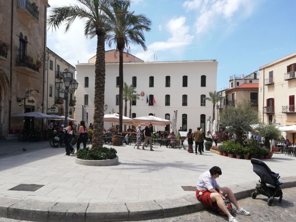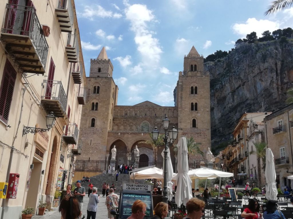 Ein Cappuccino und ein Eisshake am Sandstrand stärkten uns für den Spaziergang durch die Stadt. Diese liegt malerisch in einer felsigen Bucht und die Gassen steigen langsam bis zum Piazza del Duomo mit der Kathedrale Santissimo Salvatore im normannisch-arabisch-byzantinischen Stil an.