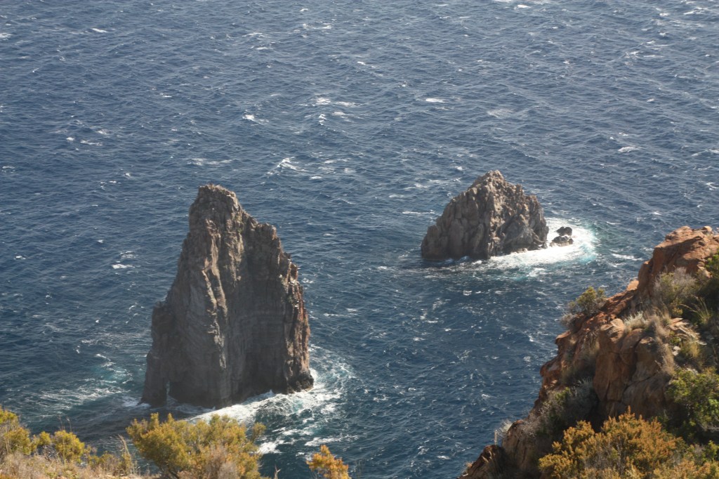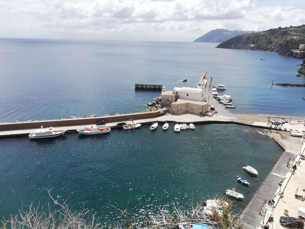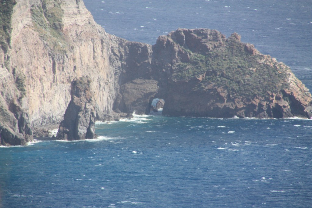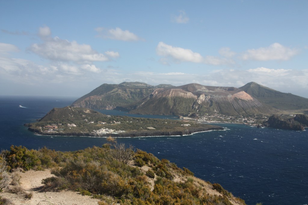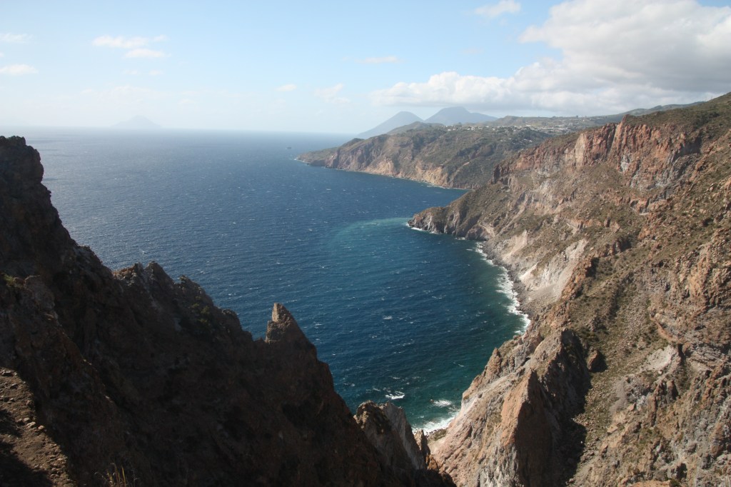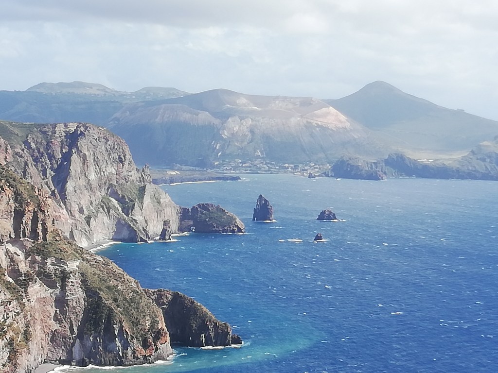 Pünktlich um 14 Uhr holte uns unsere Fahrerin Nadia vom Servizio Taxi Gian.Si. vor der Säule des San Bartolomeo mit ihrem Taxibus ab. Sie erklärte uns die zweistündige Runde zu allen wichtigen Punkten der Insel, wir wurden von ihrer Begeisterung für ihre Heimatinsel auch angesteckt. Die Fahrt führte uns zuerst durch den einzigen Tunnel der Insel nach Canneto mit breiten Kieselstrand und einer Strandpromenade. In den Sommermonaten ist der Ort beliebt für einen Strandurlaub mit Blick auf Panarea und den Vulkan Stromboli, der eigentlich dauernd aktiv ist und in kurzen Abständen speit oder raucht. Wenn es wärmer wäre, würden feine Lavasandstrände am nördlichen Ortsende zum Baden einladen, derzeit ist es auch hier noch zu kalt dazu.