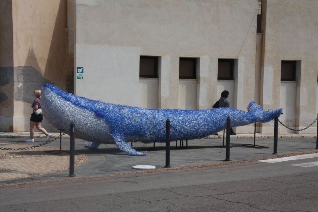 Am Eingang zur Altstadt erinnert ein Delfin aus blauen und weißen PET-Flaschen an die Plastikverschmutzung der Meere. Obwohl in Bezug auf alternative Energiegewinnung mit Windkraft und Photovoltaik auf Sizilien schon recht viel passiert, ist die Verschmutzung der Landschaft ein noch ungelöstes Problem. Schade, denn gerade diese Landschaft ist es, die neben Meer und Architektur die Gäste ins Land lockt.