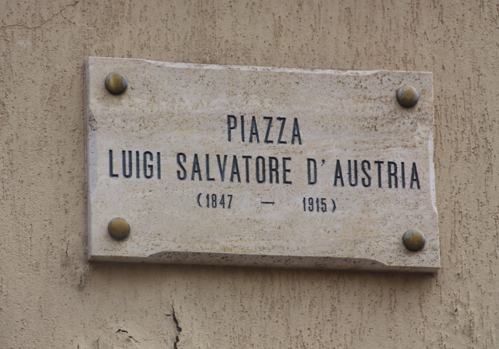 Ich hatte bereits am Vorabend für den Nachmittag ein Taxi für eine geführte Inselrundfahrt bestellt, daher erkundeten wir nach einem guten Cappuccino im Dachterrassen-Café am Hafen wie praktisch täglich zu Fuß den Hafen und die Stadt. Das erste Mal in diesem Urlaub war auch der Friedhof dabei, mit den typisch italienischen Grabstellen und Mausoleen. Weiter ging es durch die Fußgängerzone bis ich durch Zufall eine Gasse entdeckte, die nach Erzherzog Ludwig Salvator benannt war.
