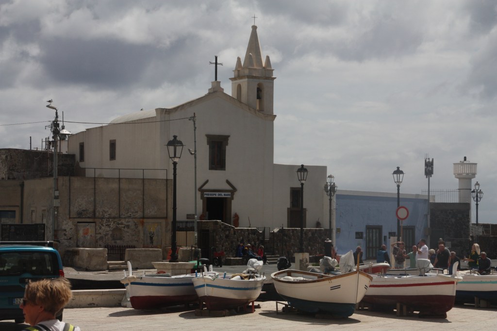 Eine lange Stiege führt hinauf zur Basilica San Bartolomeo, die am höchsten Punkt der Stadt thront. Der Innenraum der Kirche des Schutzpatrons von Lipari, die bis ins 11.Jahrhundert zurückgeht, ist mit feinen Fresken verziert, sehr beeindruckend. Wenn man in den Garten auf der Rückseite der Kirche geht, hat man einen traumhaften Ausblick über die Stadt und die beiden Häfen. Neben der Kirche lädt das archäologische Museum zum Besuch ein, dafür war unsere Zeit aber zu knapp. Ein paar Schritte weiter fanden wir das Amphitheater, das 1976 einem antiken Theater nachgebaut wurde und für verschiedenste Veranstaltungen genutzt wird. Der Blick hinunter auf die Marina Corta mit der recht unscheinbaren Chiesa delle Anime del Purgatorio direkt am Hafen und der einige Stufen höher gelegenen Chiesa di S. Guiseppe ist grandios und den Weg wert.