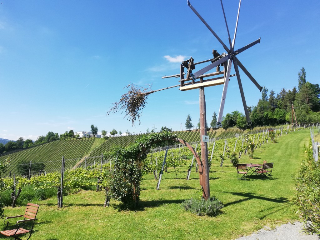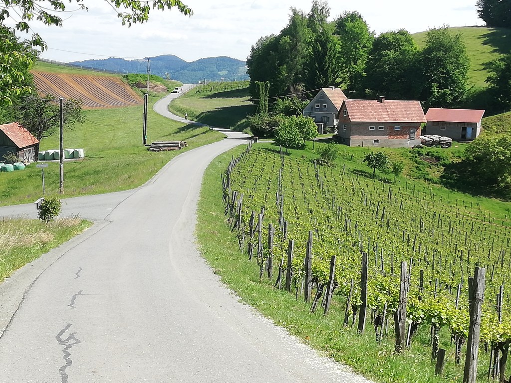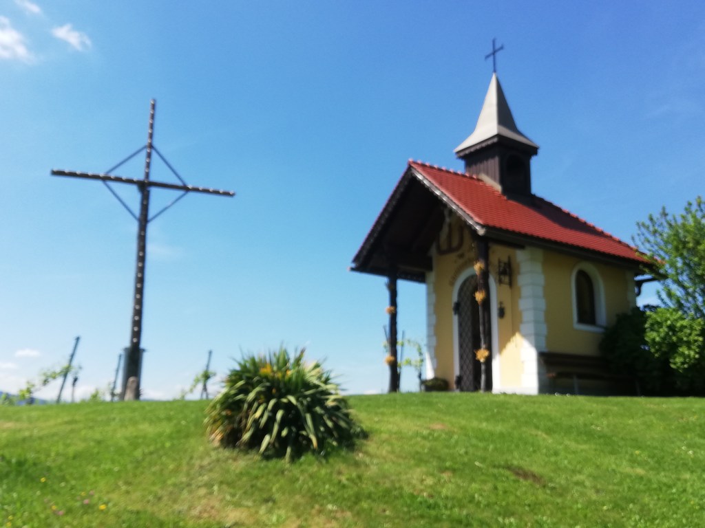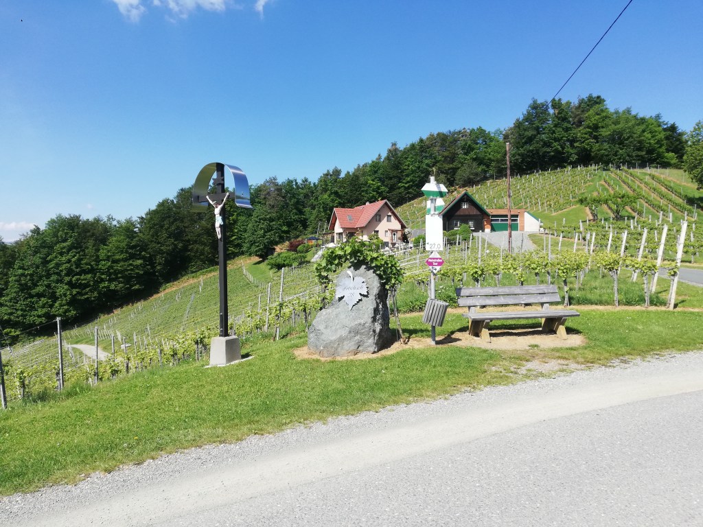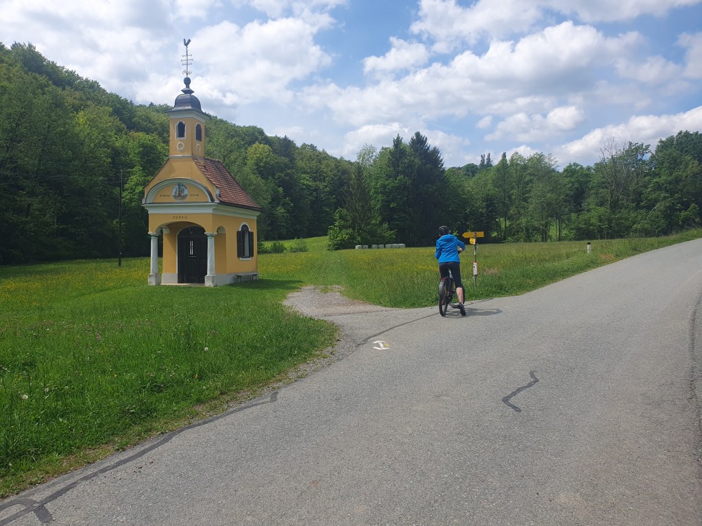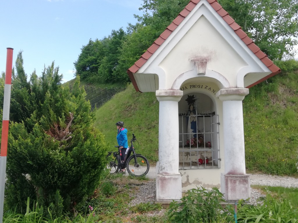 Beim slowenischen Grenzübergang und an schön renovierten Kapellen und Bildstöcken mit traumhaften Aussichten vorbei landen wir am höchstgelegenen Weingut Österreichs auf rund 700m, dem Gut Moser. Vor mehr als zehn Jahren waren wir hier mit meinem damaligen Motorrad, einer Honda Varadero und wenn mir da jemand gesagt hätte, dass ich in der Pension mit dem Fahrrad über diese kleinen kurvigen Bergstrassen herkommen würde, hätte ich ihn ausgelacht. So aber ist es einfach ein Erlebnis und viel Freude dabei.