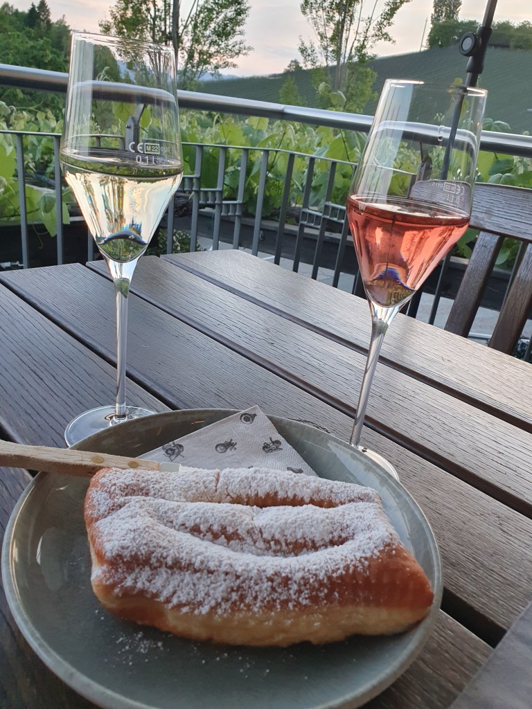 Den Abschluss macht eine Germstraube, die noch flaumiger ist als die geschmacklich ähnlichen Bauernkrapfen, mit einem Glas Frizzante.
