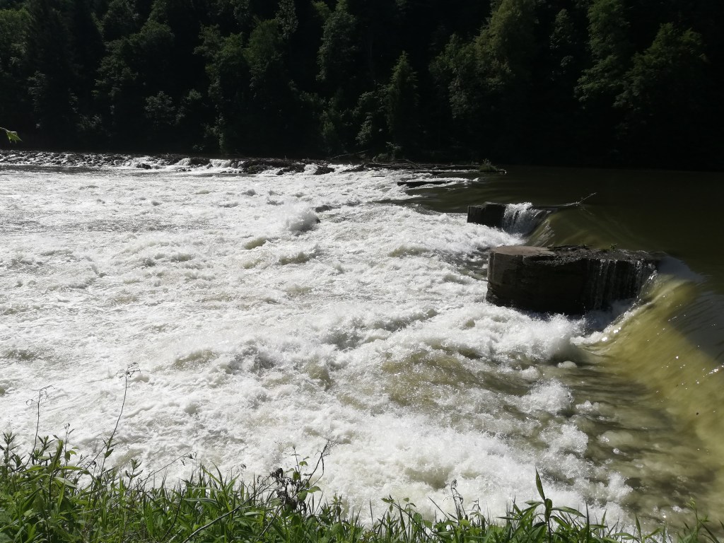 Nach einer ehemaligen Wehr, bei dem man an den braunen Wassermassen erkennt, dass es in der Obersteiermark mehr geregnet haben muss, sind wir schon an einer verfallenen aber nicht verlassenen Mühle, die etwas abseits des Radwegs liegt, angelangt. Die beiden Dörfchen Oberschwarza und Unterschwarza erfreuen uns radfahrende Touristen mit fast schon kitschiger sehr gepflegter Idylle. Ein noch zumindest von außen originales Tiefkühlhaus weckt Kindheitserinnerungen, als die Tiefkühltruhe noch nicht selbstverständlich in jedem Haushalt war. Auch zwei hölzerne Wiegehäuschen, wo wahrscheinlich die Getreidesäcke der Bauern gewogen wurden, sind noch liebevoll erhalten.