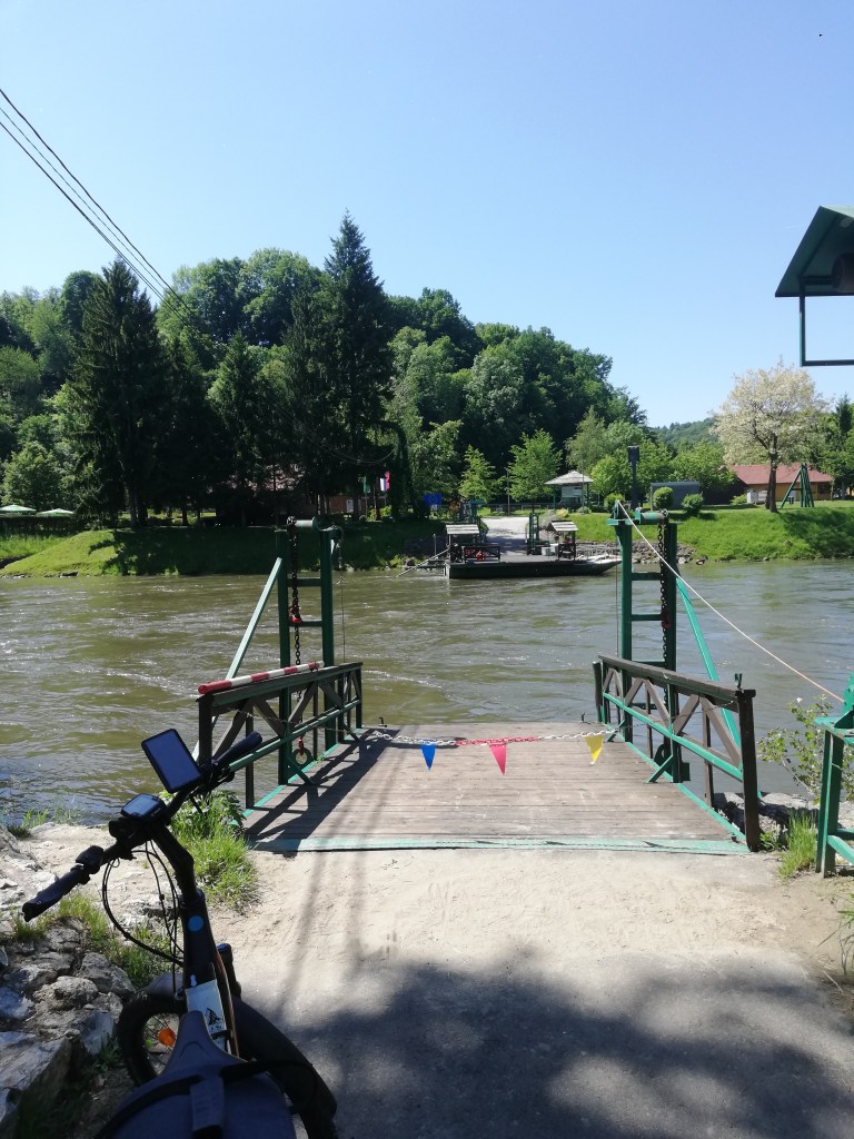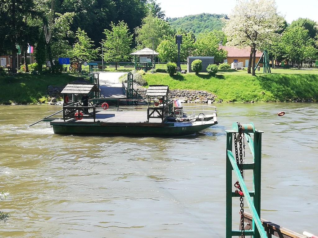 In der Nähe von Weitersfeld befindet sich eine Fähre über die Mur, die gerade von einigen Radfahrern genutzt wird, um auf das slowenische Ufer zu gelangen. Wir fahren weiter über Felder und Auen und erreichen Mureck, wo uns am Ortsanfang der mit dem Holzbaupreis ausgezeichnete Kindergarten besonders auffällt. Vor lauter Schauen habe ich aber leider aufs Fotofgrafieren vergessen.
