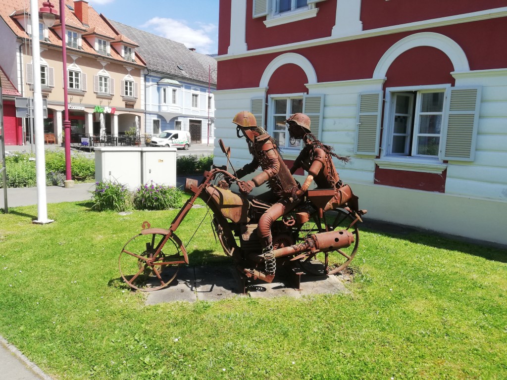 Im Ortszentrum lädt der Schanigarten des Café Oswald mit dem freundlichen Chef ein, wo wir gemütlich unseren Cappuccino in der warmen Sonne genießen. Im Murkostladen kaufen wir noch Minimuscheln aus einer Teigwarenerzeugung in Mureck, die unsere Enkelsöhne so gern in der Suppe haben. Eine gerade ankommende Motorradgruppe aus Oberösterreich weckt schon die Vorfreude auf meine Tour in den Schwarzwald in gut zwei Wochen.