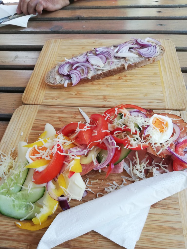 Wir fahren auch heuer bei der Schiffsmühle vorbei, das Foto ist aber von unserem letzten Besuch im Vorjahr, weil heuer einfach zu viele Leute dort sind, und dann geht’s durch den Auwald wieder auf den markierten Radweg zurück und weiter flussaufwärts. Kurz vor Spielfeld wollen wir den kleinen Hunger stillen und gönnen uns bei einer idyllischen Labestation mit Hase und Enten als Radlerjause ein belegtes und ein Verhackerts-Brot. Den flüssigen Radler, natürlich auch aus der Steiermark, habe ich nicht fotografiert, der ist ja eh Allgemeingut. Satter als geplant geht es dann zurück zu unserem Auto in Ehrenhausen.
