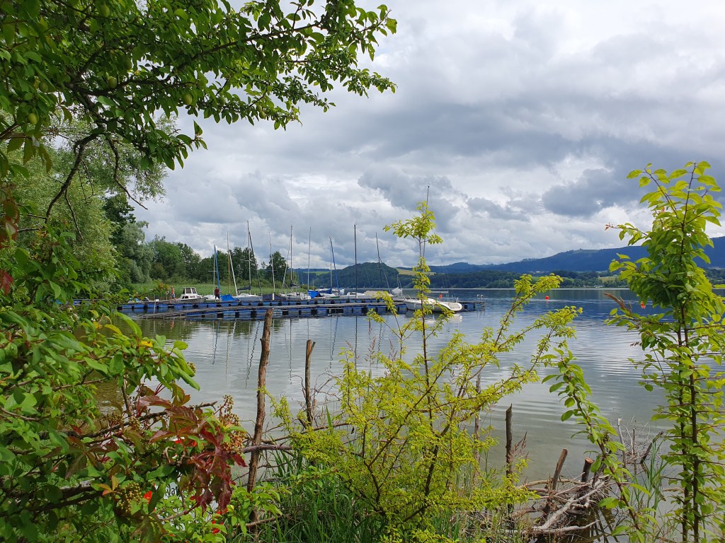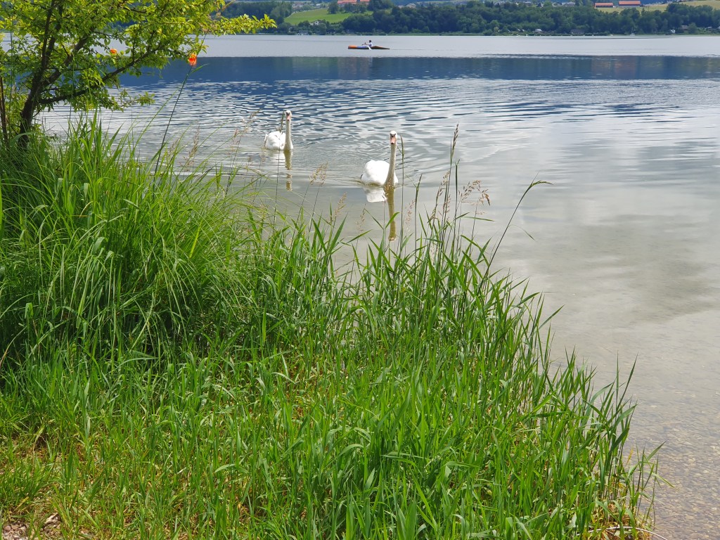 Kurz bevor die Westbahn ebenfalls ganz knapp an den See herankommt, entdeckte meine Frau einen kleinen Seezugang, wo wir bei einer kleinen Pause Fische, Vögel und Boote beobachten konnten.