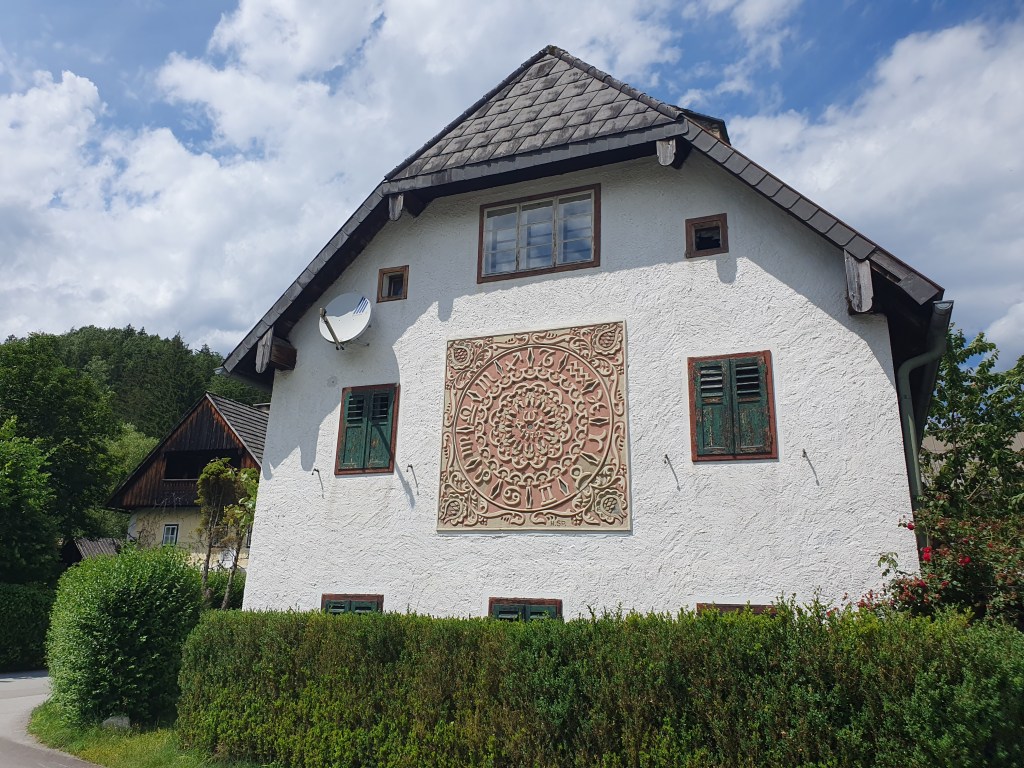 Die Runde mit dem Schiff über den See war gemütlich und dabei habe ich auch die oben genannten Punkte gelernt. Wir entschieden uns dann, die Kirche Mariahilf hoch am Hang oberhalb von Mondsees anzusehen, eine sehr steile Straße hinter der Basilika führt hinauf, was aber mit dem E-Bike kein echtes Problem ist. Die Wallfahrtskirche selbst war und ist noch immer ein Anziehungspunkt für viele Pilger. Der Hochaltar gilt vor allem in seinem Aufbau als eine Meisterleistung des Bildhauers Meinrad Guggenbichler, der, – ein Schweiz-Bezug für meine Frau – in Einsiedeln geboren und in Mondsee verstorben ist. In der Mitte des Untergeschoßes hängt in einem verglasten Schrein das Gnadenbild – eine Kopie des Originals von Lukas Cranach dem Älteren, das sich in Innsbruck befindet.