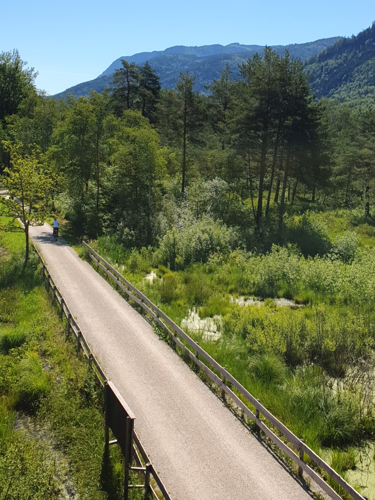 Was aber schon verwundert, sind die auch auf unseren ausgesuchten Strecken vorhandenen Teilstücke, die ohne bauliche Trennung auf stark befahrenen Straßen führen. Die Werbung des Salzkammergut-Tourismus suggeriert anderes und weist auch selten darauf hin.