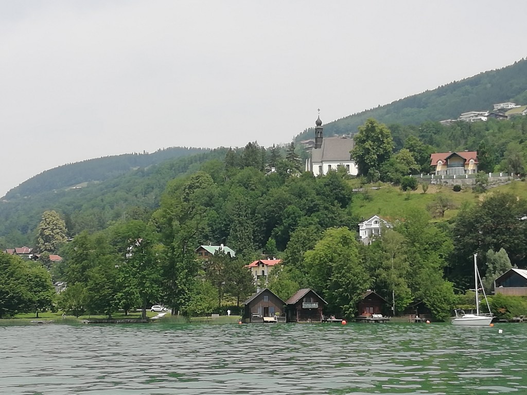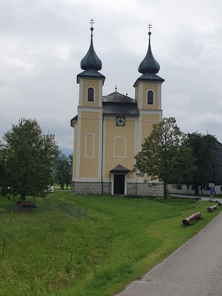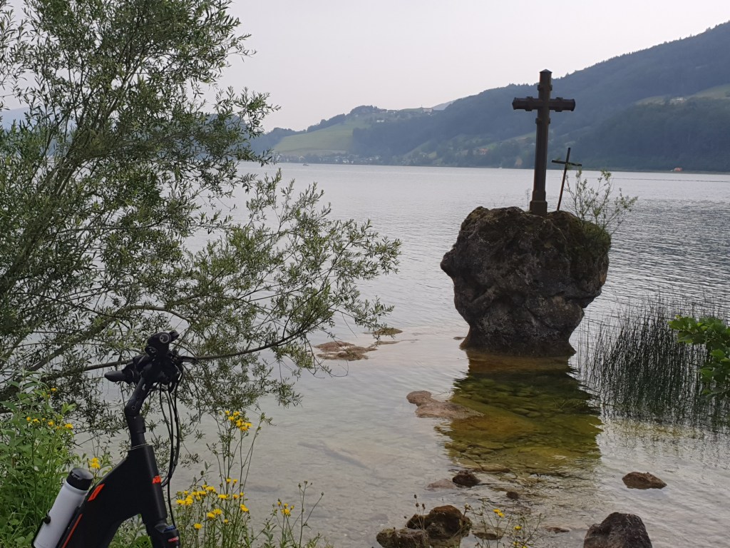 Für diesen Tag stand eine Schiffsrunde am Mondsee am Plan, daher fuhren wir mit den Rädern vom Hotel Eichingerbauer über den R2 auf kleinen Straßen bis zur wunderschönen Kirche von St.Lorenz unterhalb der Drachenwand und dann über Schwarzindien nach Mondsee.
