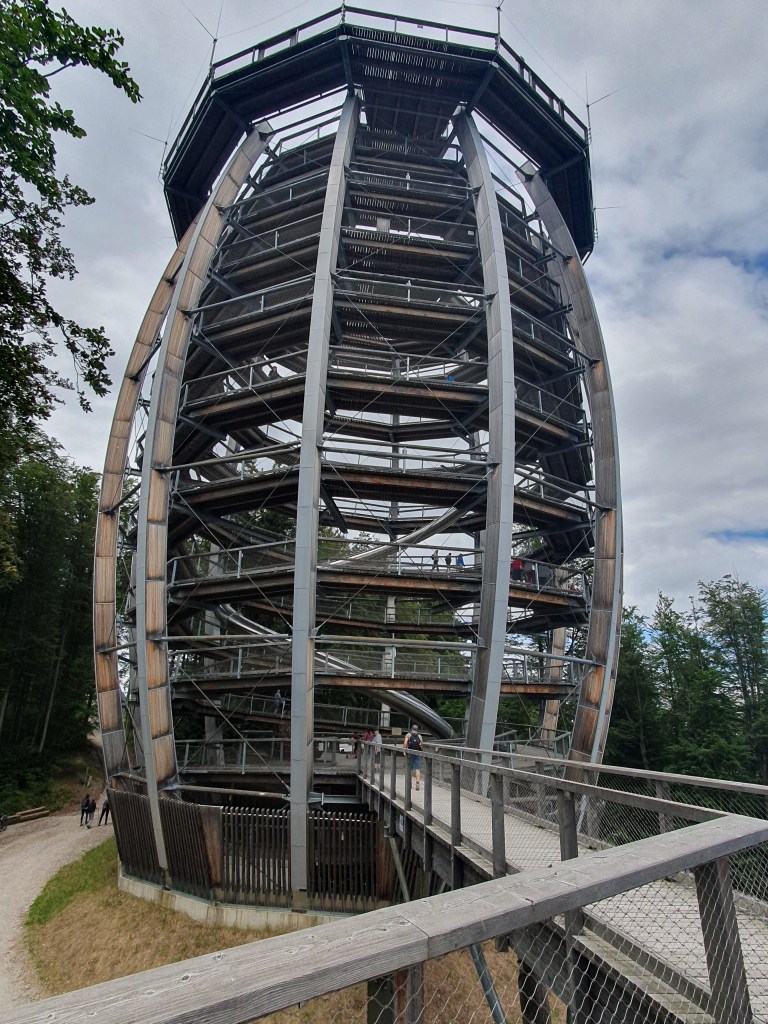 Auf unserer Fahrt nach Mondsee legten wir in Gmunden einen Zwischenstopp ein. Auf dem Grünberg gibt es einen Baumwipfelweg mit Aussichtsturm, der in dieser Form in Österreich einzigartig ist und den wir schon seit Langem sehen wollten.