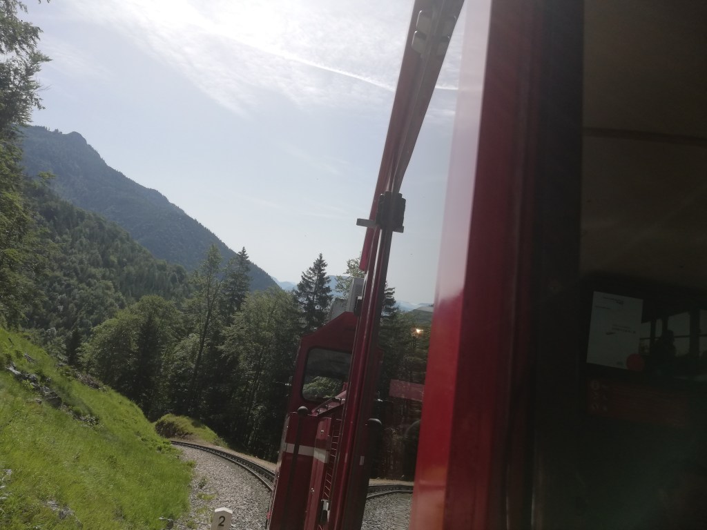 Wenn man historische Bahnen mag, ist auch die Talfahrt wieder ein Erlebnis, sonst reicht es auch so, die Fahrt durch Felsen, Wälder und Almen mit dem fast ständig grandiosen Ausblick zu genießen.