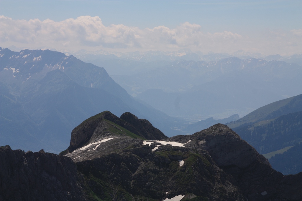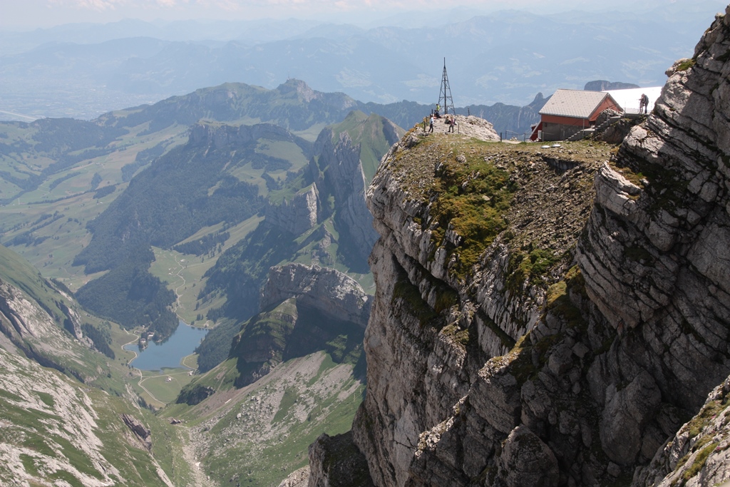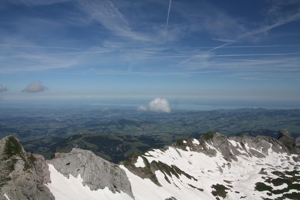 Der Säntisgipfel ermöglicht einen Blick auf sechs Länder: Schweiz, Deutschland, Österreich, Liechtenstein, Italien und Frankreich. Das Wetter ist uns wirklich hold, so ist es angenehm warm und sonnig und so finden wir neben dem Blick auf den Bodensee auch den Zürichsee, von den umliegenden Bergen ganz zu schweigen.