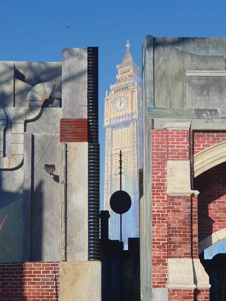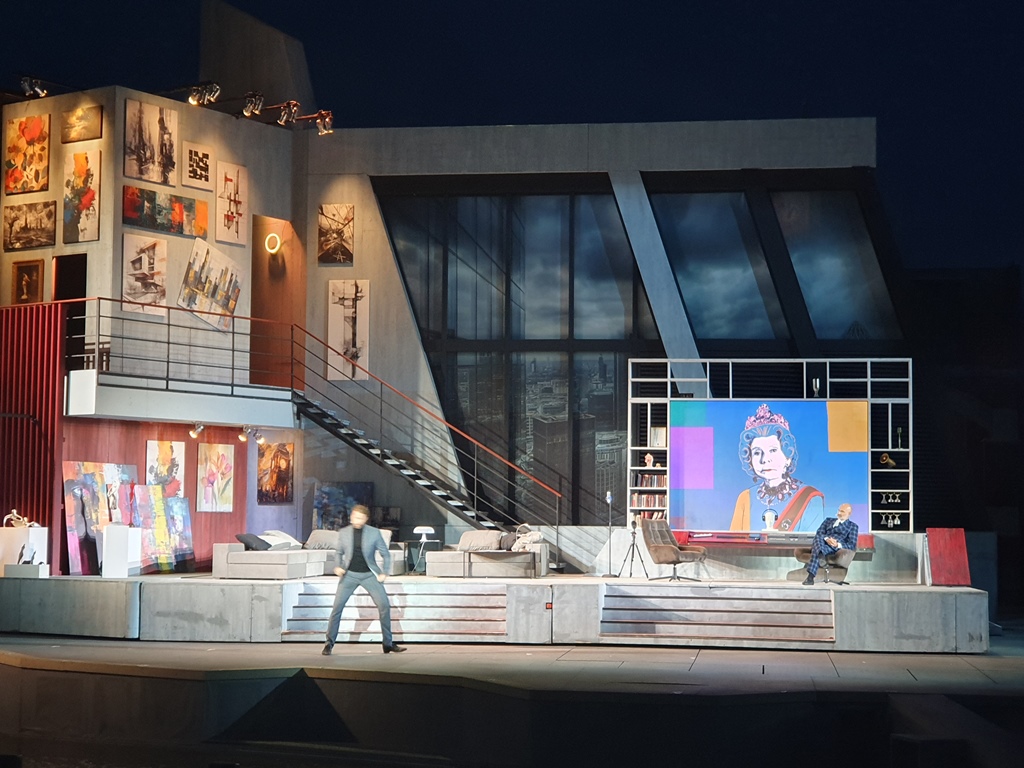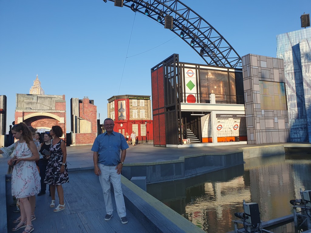 25 Meter ist er hoch, der „Big Ben“, der im Hintergrund die Kulissen der Seebühne in Mörbisch überragt und dann doch erst in der zweiten Hälfte der Aufführung wirklich zu sehen ist. Er wirkt so weit entfernt und fast wie ein Hologramm in seiner perspektivischen Darstellung.