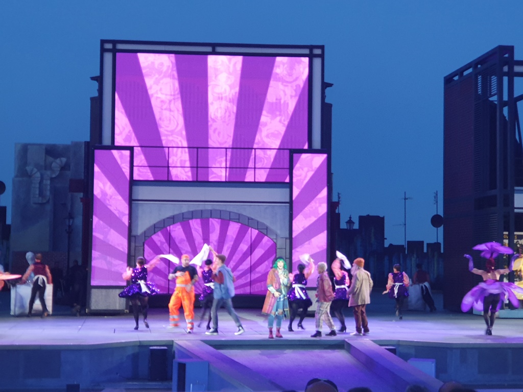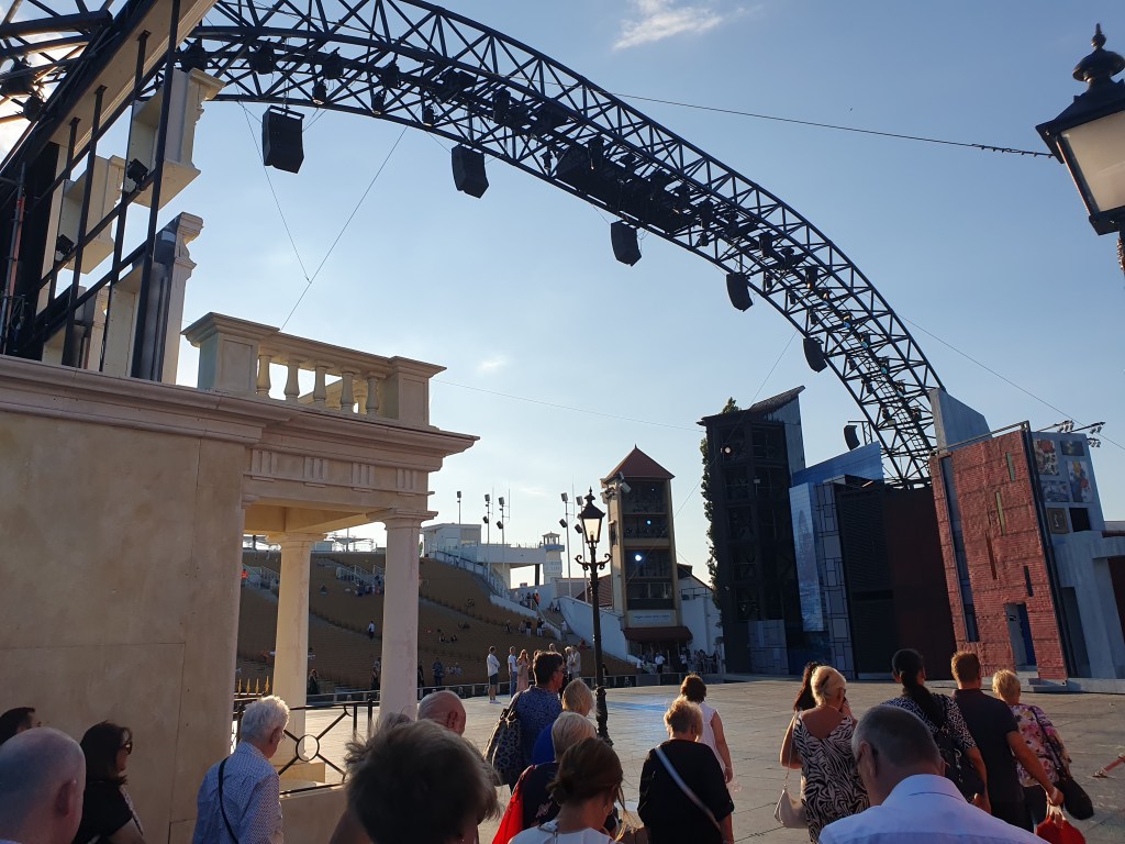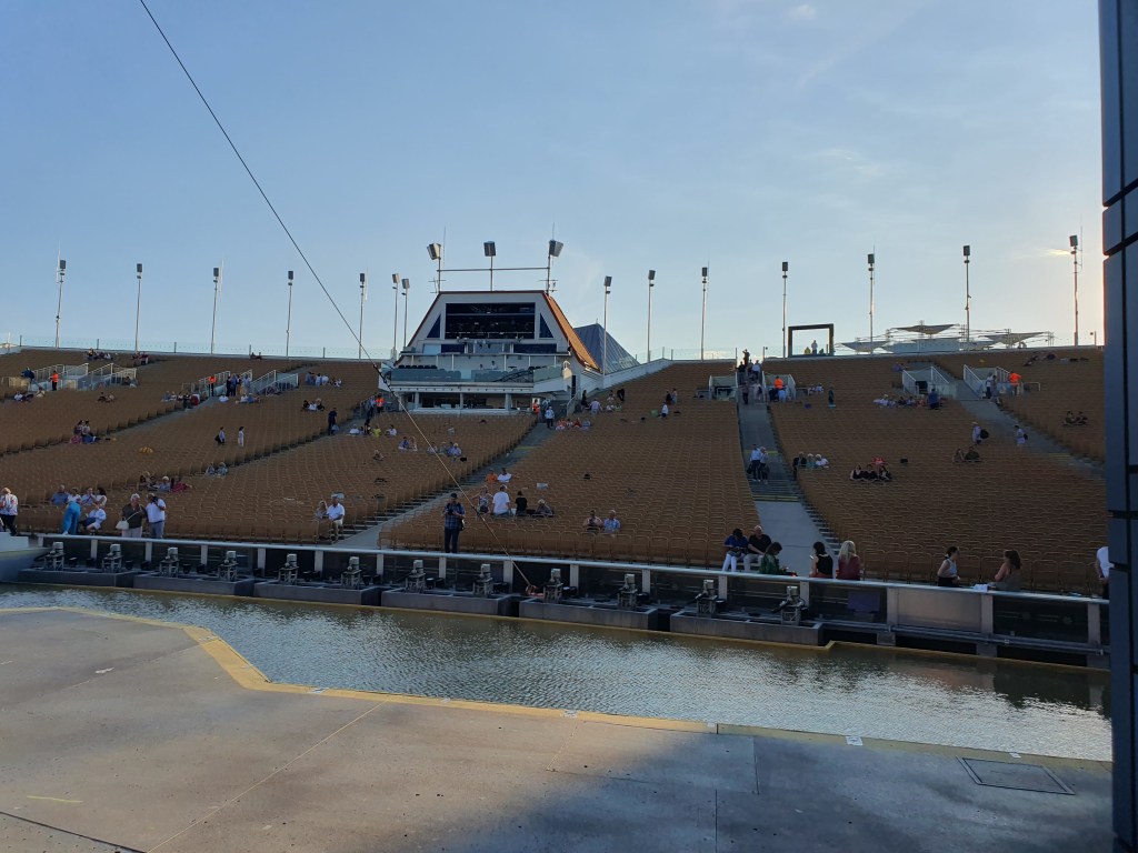 Nach einem gemütlichen Cocktail vor dem Bühnengelände geht die Vorstellung bald los. Eigentlich wollte ich über die Aufführung nichts schreiben, da ich nichts davon verstehe und daher auch kein Kritiker sein kann. Aber es hat uns begeistert und mitgerissen wie viele andere auch, daher doch ein paar Worte dazu.