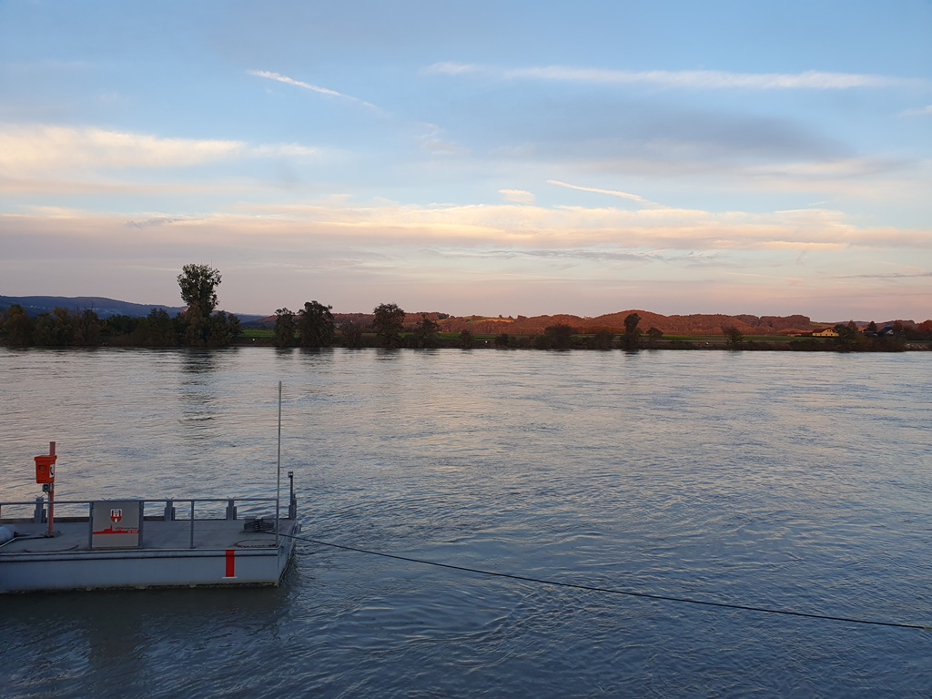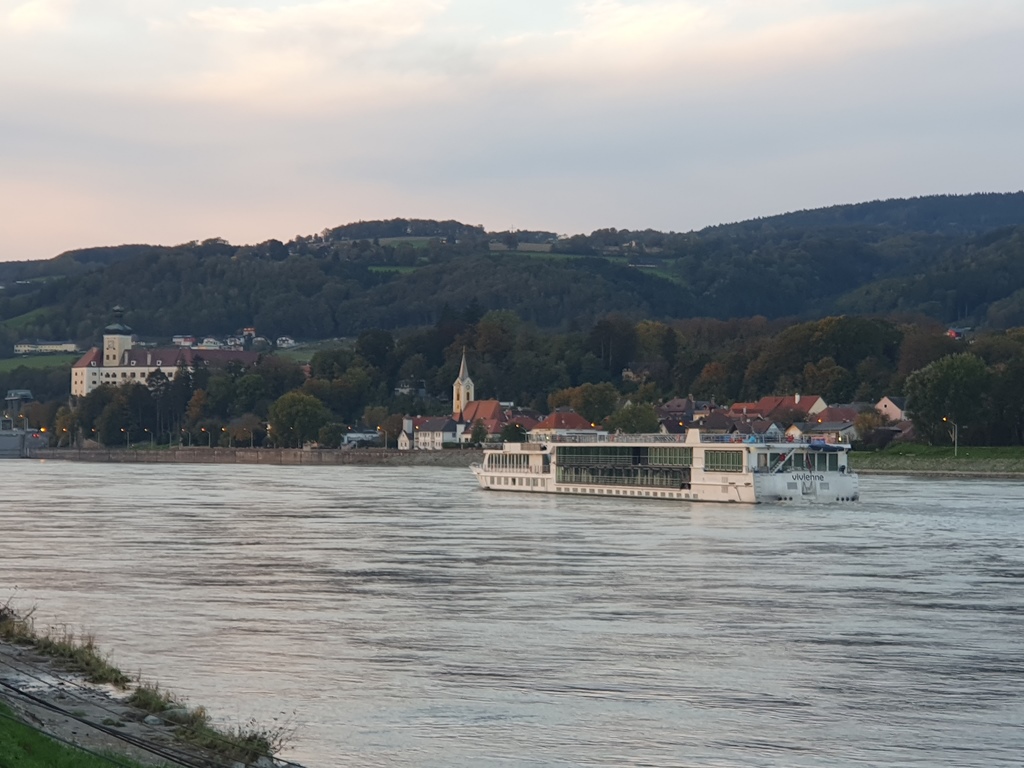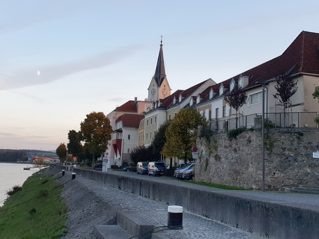 Ich genieße noch kurz die spätnachmittägliche Stimmung mit der in der Sonne glitzernden Donau, bevor ich die Serpentinen hinunter nach Marbach nehme und donauaufwärts bis Persenbeug und über die Donaubrücke nach Ybbs fahre.