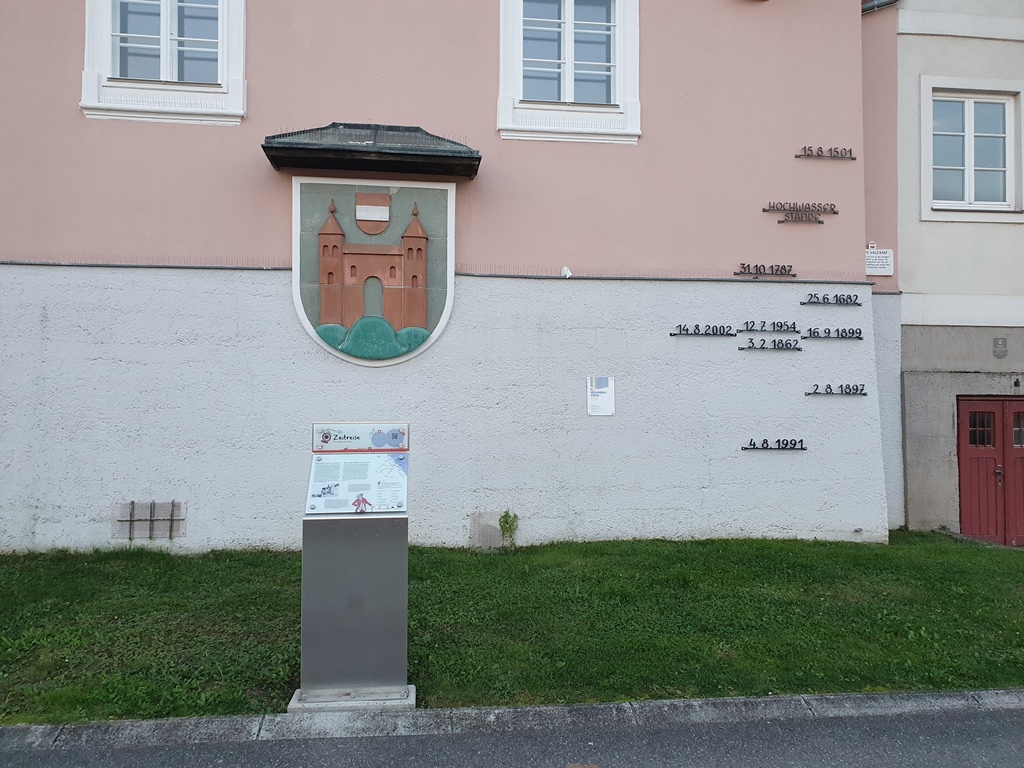 Ich habe einen privaten Termin in Ybbs an der Donau, daher habe ich beschlossen, eine Runde durch das Waldviertel zu machen und am nächsten Tag das Motorrad bei meiner Schwester einzuwintern. Die Anfahrt geht durch den Wienerwald über Klausen-Leopoldsdorf nach Pressbaum, dort gleich wieder weiter auf kleinen Sträßchen, die immer wieder wegen Ausuferungen der jetzt wieder kleinen Bäche teilweise bis zur Fahrbahnhälfte ausgerissen sind, nach Rappoltenkirchen und Judenau mit seiner Schloßdurchfahrt hinein ins Tullnerfeld und vorbei am gleichnamigen Bahnhof, der erst Mitte Dezember wegen der Hochwasserschäden wieder mit der Westbahnstrecke in Vollbetrieb gehen wird.