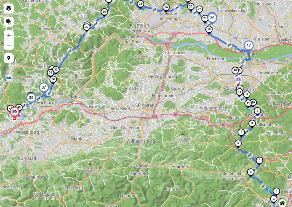 Eine schöne Ausfahrt, mit vielen Kurven durch das herbstliche Waldviertel und auch wieder einigen Zwischenstationen mit interessantem Hintergrund ist ein guter Abschluss meiner ersten Motorradsaison in der Pension. Der Blick von der Donaulände gegen Maria Taferl und das Schloß Persenbeug lassen diesen Motorradtag ausklingen.