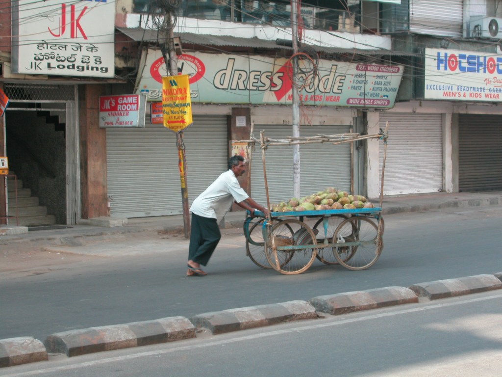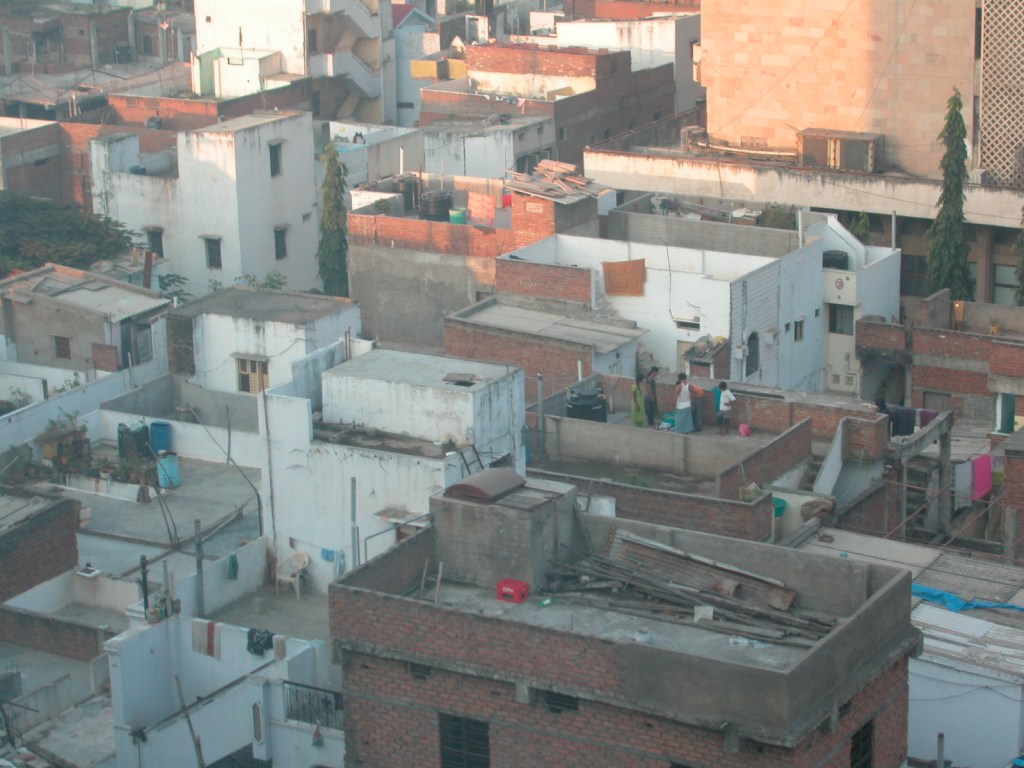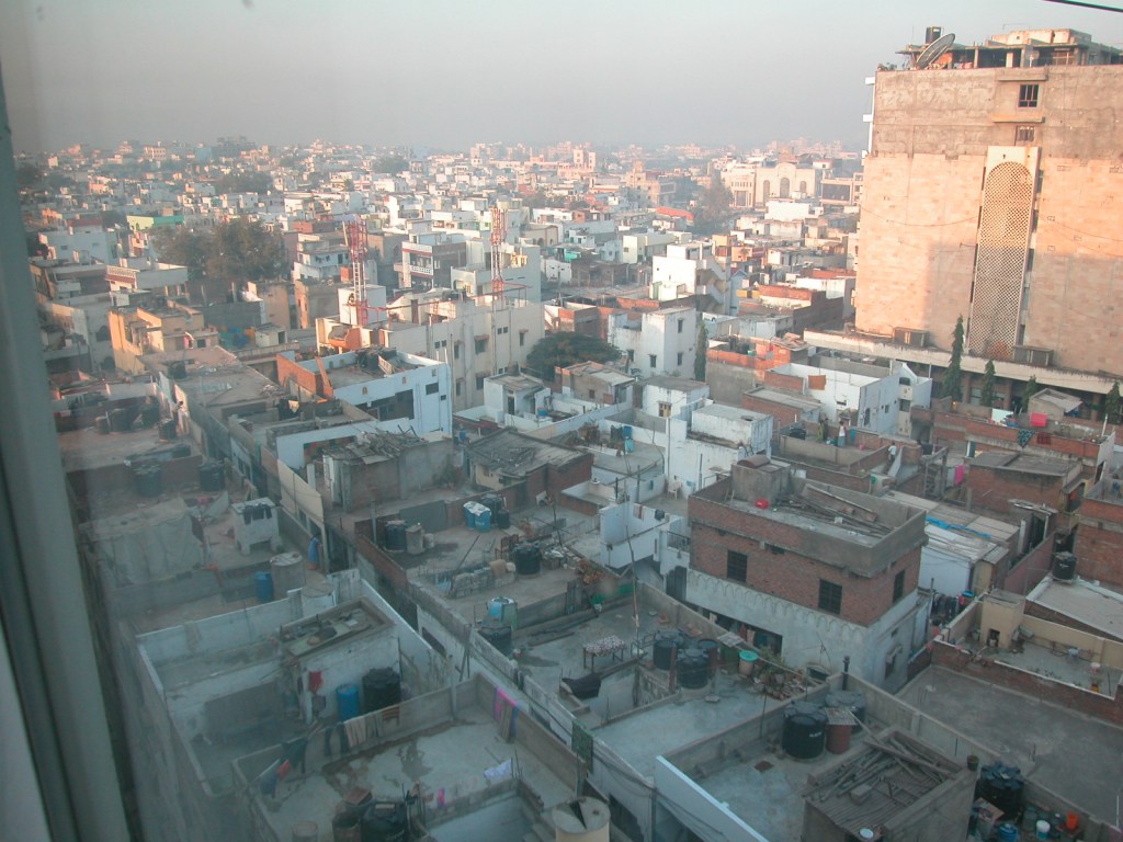 Unser Buffet im Kurs im Siemens-Gebäude möchte ich auch noch beschreiben. Es gibt immer etwas Vegetarisches mit Reis, das wird anscheinend von irgendwoher geholt und von einem Angestellten vorbereitet. das ist, obwohl scharf, doch immer lecker. Hier prallen aber auch die Welten noch aufeinander. Obwohl in der Küche eine Einbauanrichte da ist, hockt der Angestellte mit den Töpfen um ihn herum am Boden und richtet das Buffet an. Unsere Kursteilnehmer essen alle „westlich“ mit Gabel oder Löffel, die Hausangestellten essen aber alles mit den Fingern, genauso wie ich es auch vom Hotelzimmer aus auf den benachbarten Hausdächern beobachten kann.