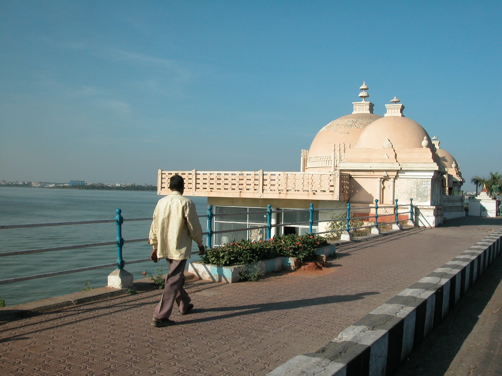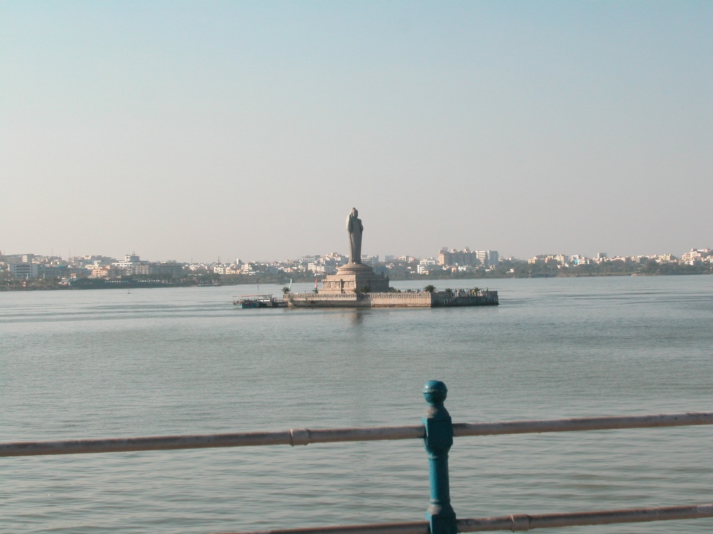 Der Ausblick hinunter auf die Zwillingsstadt, wie Hyderabad und Secundarabad mit dem Hussain Sagar See in der Mitte auch genannt wird, ist atemberaubend schön. Ich kann doch noch einige Fotos machen, der Akku der Kamera hat sich wieder erholt.
