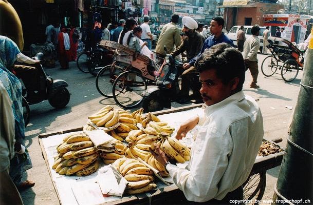 Die Taxis streiken nicht mehr, ich habe innerhalb von ein paar Minuten einen 3-Wheeler, der mich zum Hotel bringt. Es ist nicht viel Verkehr, so sind wir recht rasch da. Vor dem Hotel steht ein Händler mit Bananen, ich kaufe 3 Stück, von der großen Traube (oder Dolde?) herunter geschnitten, meine ersten frischen Bananen.