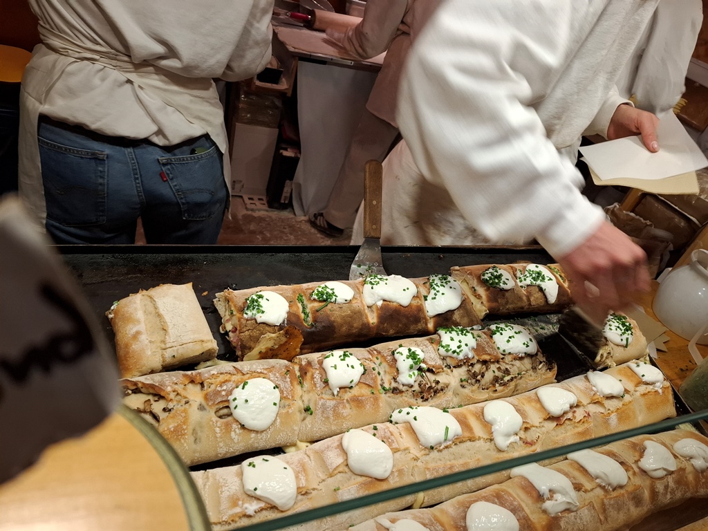 Den Posaunenchor und das A Capella- Adventskonzert konnten wir leider nicht hören, dafür haben wir wieder ein spezielles kulinarisches Schmankerl entdeckt. An einem Stand gab es georgisches Fladenbrot, Khachapuri genannt, gefüllt oder eher belegt mit einer Salsa aus roten Rüben (rote Bete) und einem Joghurt-Käse Dip. Auch dafür habe ich ein Rezept gefunden, die Salsa und der Dip kann nach eigenem Geschmack zubereitet werden.