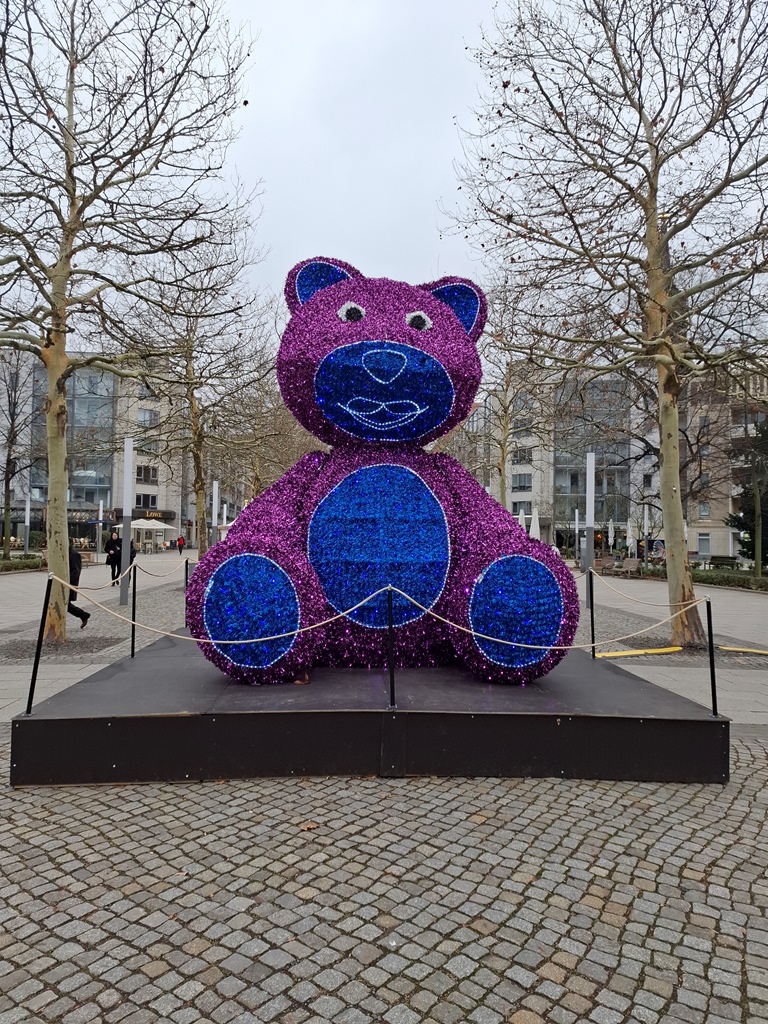 Nicht nur die Kinder freuen sich über den 4 Meter hohen lila Teddy, der seit 2022 den Beginn des Marktes am anderen Ende markiert. Man glaubt es nicht, aber es gibt bereits eine Petition für und eine gegen den Bären und im letzten Jahr wurde ihm von Vandalen sogar der Kopf angerissen. Das wurde von Überwachungskameras gefilmt, es war aber niemand erkennbar. Trotzdem wurde daraufhin der Datenschutzbeauftragte der Stadt Dresden aktiv und schränkte die Kameraüberwachung stark ein.