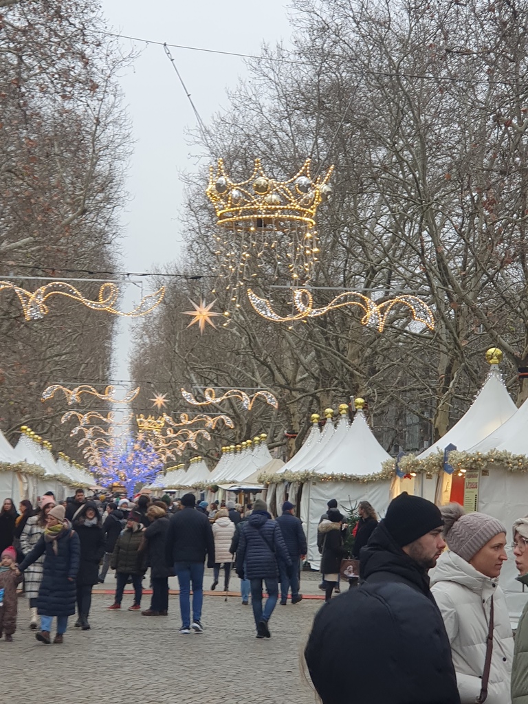 Daher trägt natürlich der hier veranstaltete Weihnachtsmarkt, der sich durch die ganze Allee über rund 500 Meter bis fast hinauf zum Albertplatz zieht, ebenfalls seinen Namen. Dieser zweitgrößte Dresdner Weihnachtsmarkt hat sich der Internationalität verschrieben, unter anderem ukrainische, philippinische, georgische, indische, tschechische und syrische Spezialitäten zeigen das. Die Striezel der Bäckerei Ottendorfer werden sogar noch mit dem Trabi ausgeliefert (oder doch nur beworben?)
