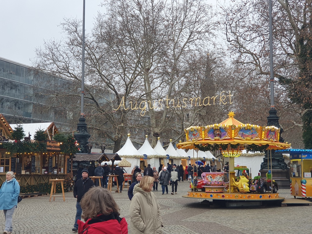 Damit ist der Augustusmarkt vor allem ein weihnachtlicher Streetfoodmarkt mit internationalen Angeboten. Kettenflieger, Riesenrad und Kinderkarussell ergänzen das Programm und lassen dafür die Kinderherzen höher schlagen.