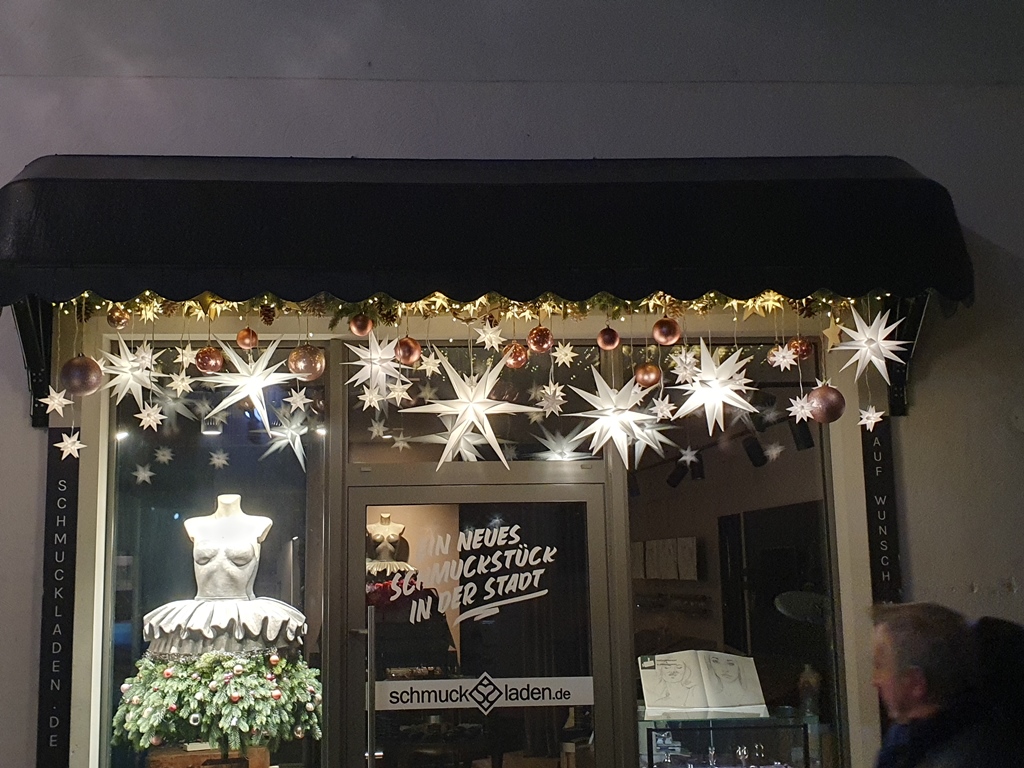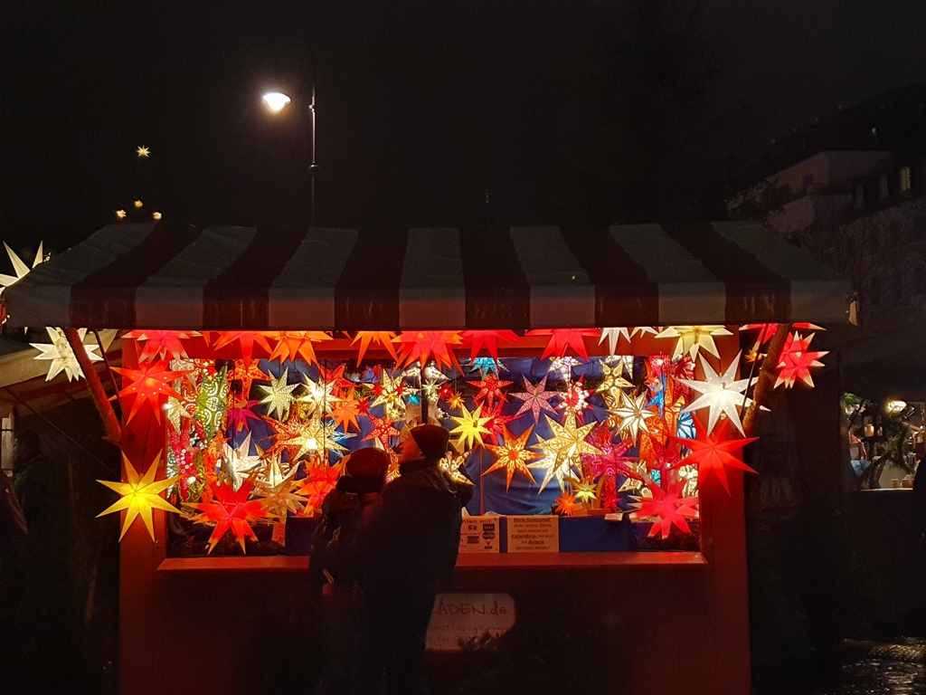 Natürlich darf auch die mit 14,62 Meter Höhe weltgrößte erzgebirgische Stufenpyramide nicht fehlen. Sie wurde 1999 sogar in das Guinness-Buch der Rekorde aufgenommen. Die Weihnachtsbäume sind alle mit den schönen Dresdner (Herrnhuter) Weihnachssternen geschmückt. Dieser zwölfzackige Stern aus Papier oder auch schon aus Kunststoff in verschiedenen Farben, der von innen elektrisch beleuchtet ist, wird schon seit mehr als 160 Jahren von der Herrnhuter Brüdergemeine hergestellt.
