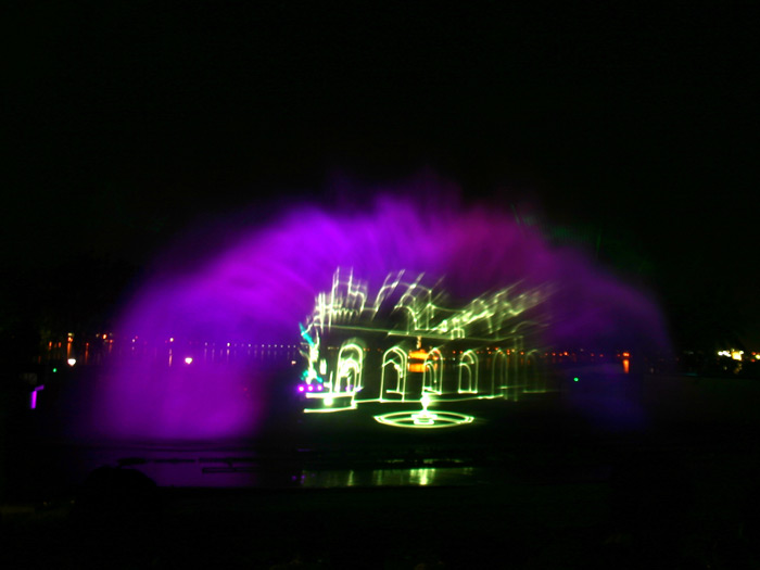 In der beeindruckenden Lasershow im Lumbini Stadion wollte man die Konflikte zwischen Moslems und Hindi kleinreden und das auch mit dem Märchen von der Hindu-Prinzessin und dem Moslem-Prinzen beweisen, aber ich habe einige Male im Straßenverkehr Konfrontationen zwischen hinduistischen und moslemischen Fahrern miterlebt. Einmal hat ein hinduistischer Mopedfahrer meinem moslemischen Taxifahrer durch das geöffnete Seitenfenster eine Ohrfeige gegeben, weil er ihn angeblich abgedrängt hatte. Die Lasershow ist aber auch heute noch ein Publikumsmagnet.