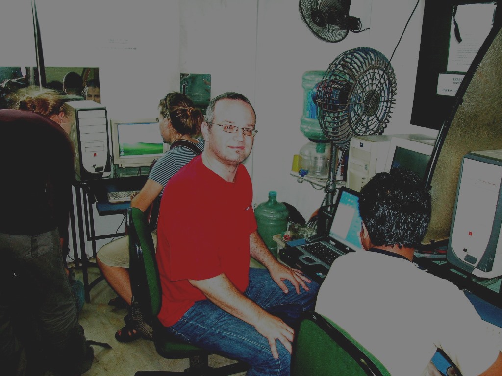 Im Internetpoint kennen sie mich schon von gestern, ich bekomme sofort einen Platz, ein PC wird wieder abgesteckt, damit ich mein Laptop an das Netzwerk bringen kann. So kann ich wieder meine Mails abarbeiten und sogar mit Evi über Skype sprechen. Und dann zahle ich für nicht ganz eine Stunde online nur 35 Rupien, das sind rund 60 Cent!