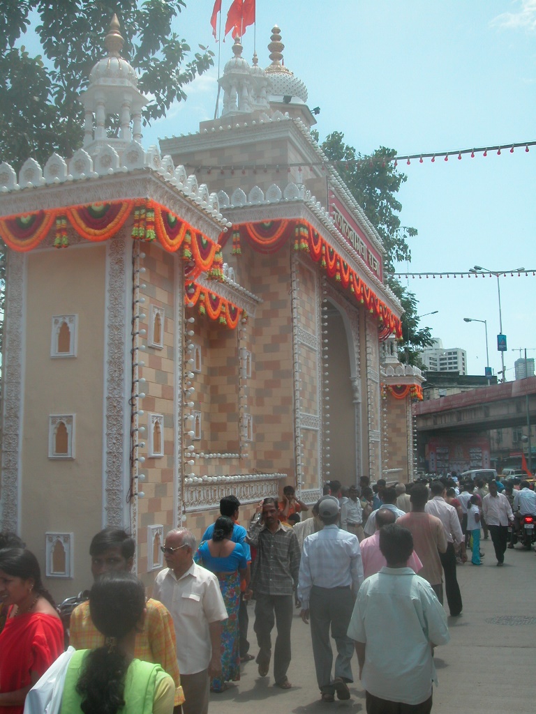 Mein indischer Kollege Swapnil hat mir geraten, zu Lalbaugh Cha Raja zu gehen. Der Taxifahrer möchte mir unbedingt eine Tour einreden, die sicher interessant ist, doch ich habe irgendwie das Gefühl, er will mich linken und ich sage ab, auch weil ich ja bei den Ganesh Festivitäten dabei sein will. Dafür knöpft er mir 150 Rupien für die Fahrt ab, ein Drittel wäre wahrscheinlich der richtige Tarif gewesen. Warum komme ich mir bei Moslems hier immer übers Ohr gehauen vor?