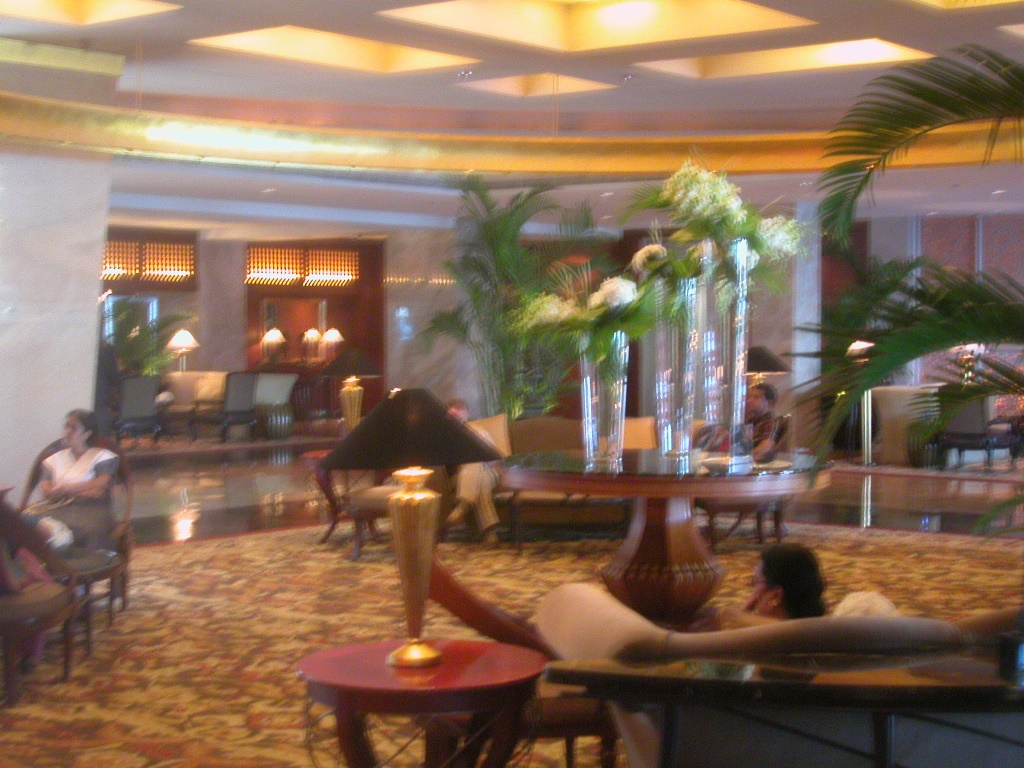 Mein Mumbai-Reiseführer behauptet, dass man das Hotel besichtigen kann und ich probiere das natürlich aus. Der Anblick ist überwältigend, das Personal freundlich und ich mische mich gleich unter eine Gruppe von amerikanischen Touristen und ziehe mit ihnen durch die Gänge vorbei an den Geschäften mit allen Designern bis zur Poolbar und der Lobby als Verbindung zwischen altem und neuem Teil. Es ist wirklich wert, den Abstecher gemacht zu haben.